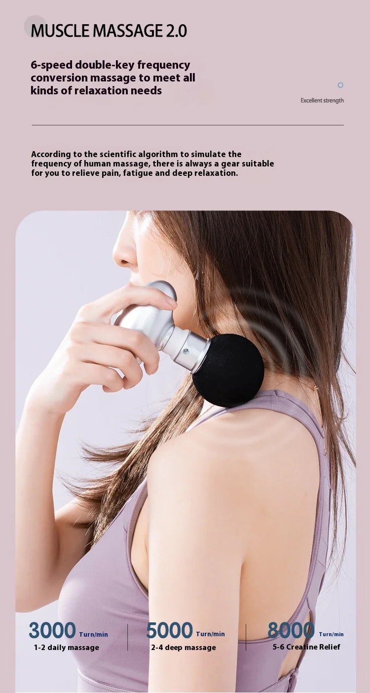 Relieves muscle fatigue: Through high-frequency vibration, it can penetrate deep into the muscles, promote muscle blood circulation, and accelerate the discharge of metabolic wastes, thereby effectively relieving muscle soreness, stiffness and other fatigue symptoms.
