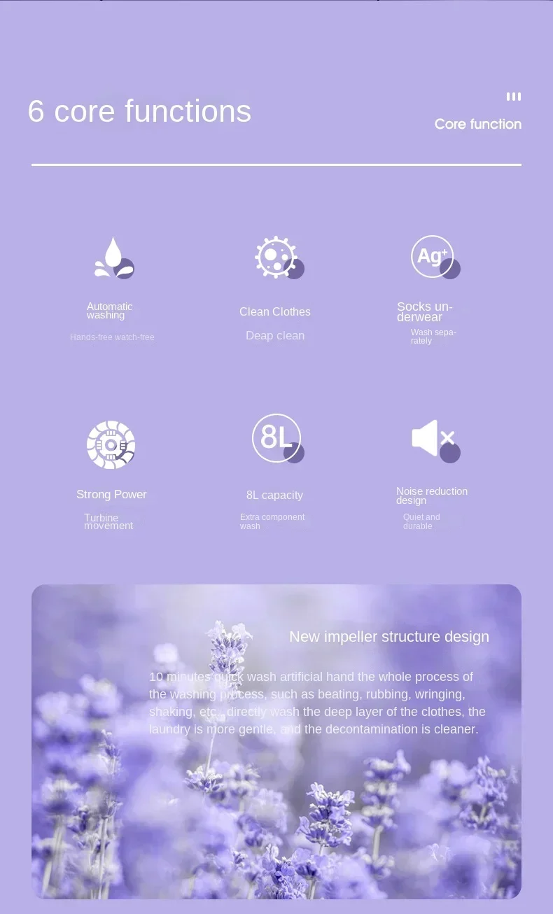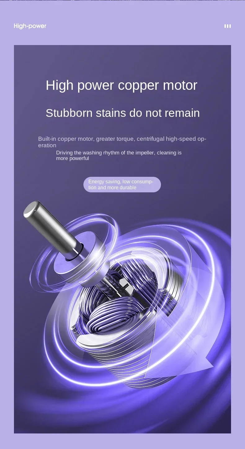 How to use: Step 1: Connect the power supply. Step 2: Press the bottom button and, after 2 seconds, the washing machine will start. After the machine is turned on and the mode is selected, do not touch it anymore. Cleans automatically.