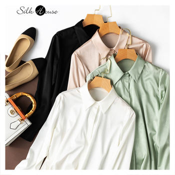 Natural Mulberry Silk Shirt Women’s Word Pattern Elastic Satin Simple Long Sleeve Square Neck Fashion Top New Spring and Autumn