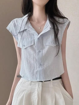 Summer Women Korean Fashion Leisure Slim Shirts Sexy Crop Blouses Elegant Vneck Short Sleeve Sweet Chic Formal Shirt Top Office