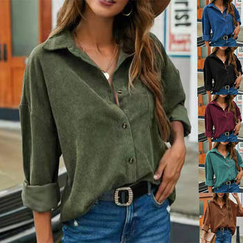 Women Blouses Turn-down Collar 2022 autumn/winter Solid Color Long Sleeve Button Harajuku Female New Dropshipping Myh110