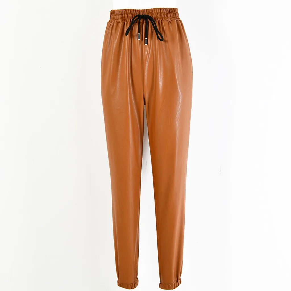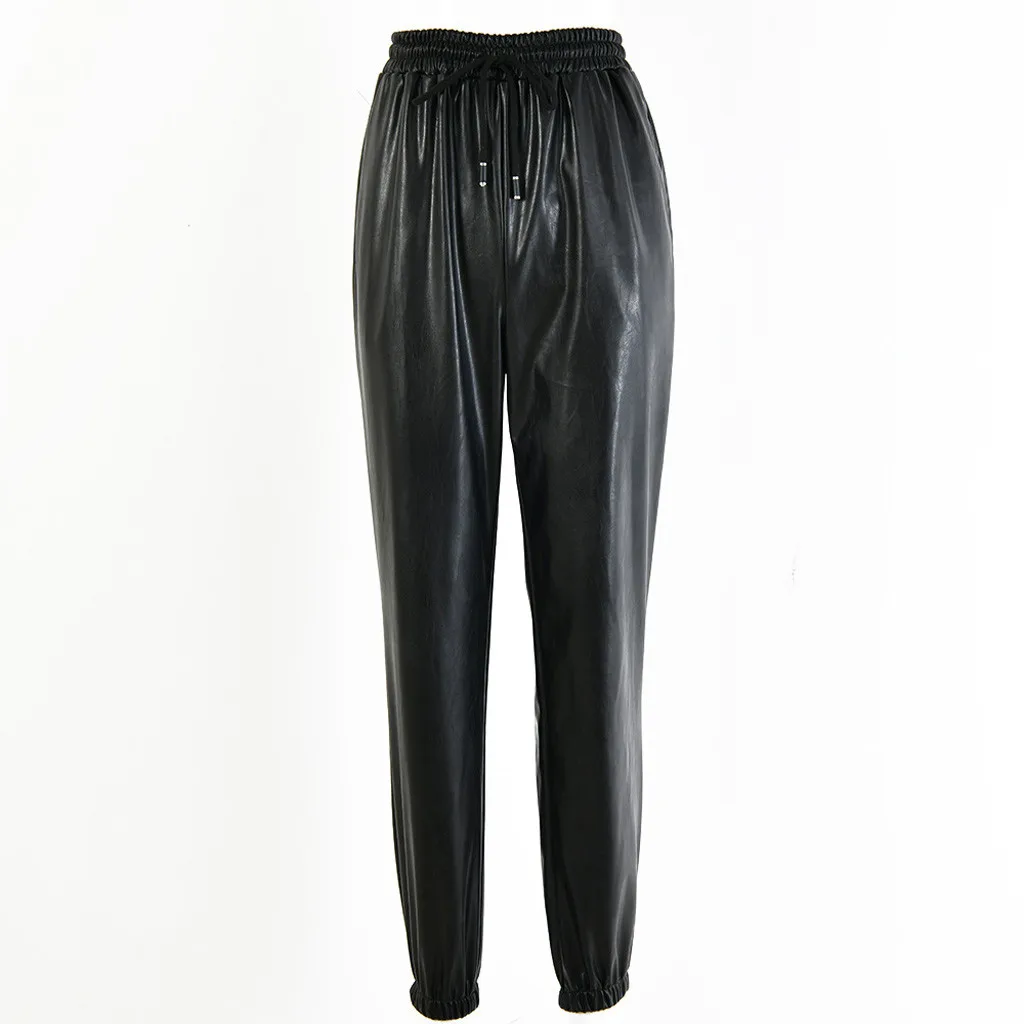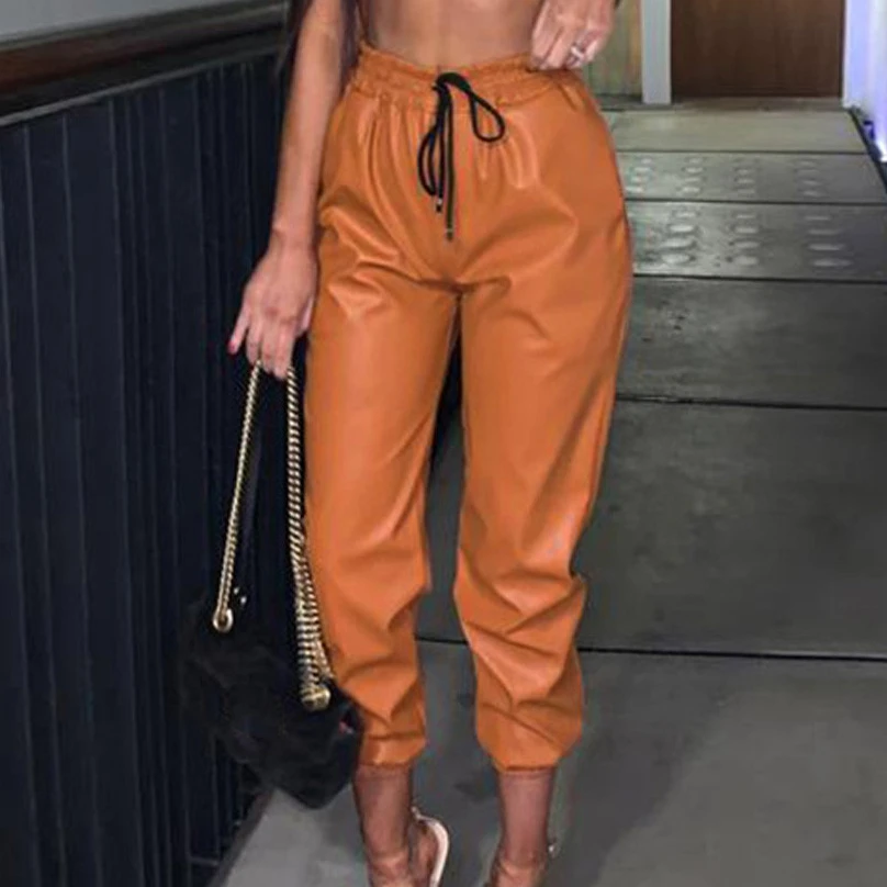 PU Faux Leather Pants Women High Waist Elastic Lace Up Slim Bottoms Pants Ladies Sexy Club Trousers Pantalon Femme Women Pants