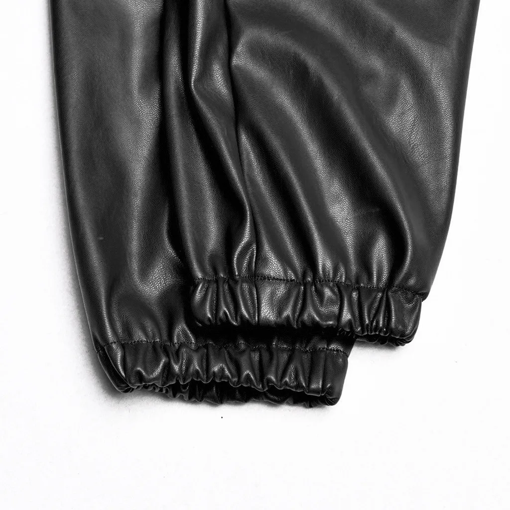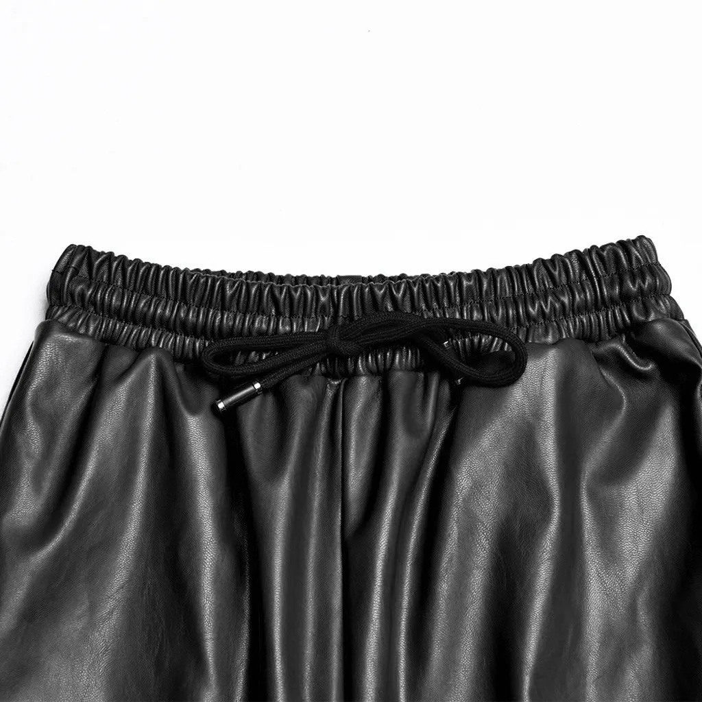 Features:Solid,Faux Leather,High Waist,Bandage,Casual Wear,Street wear.