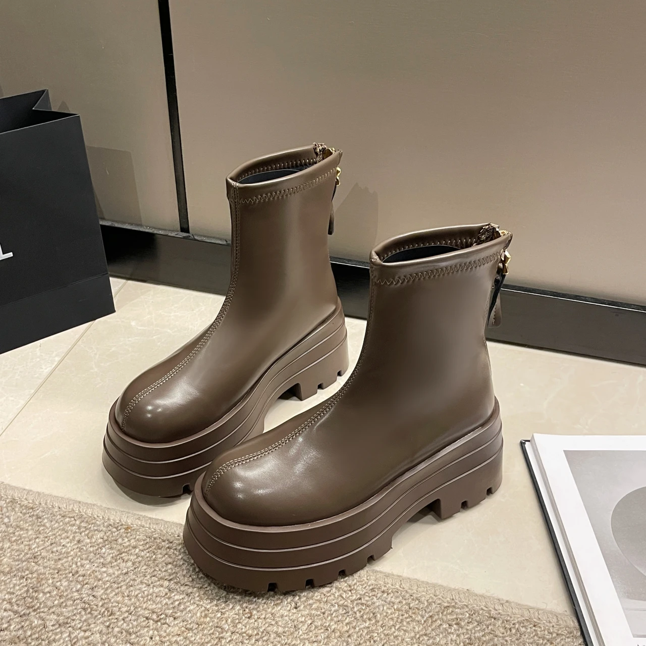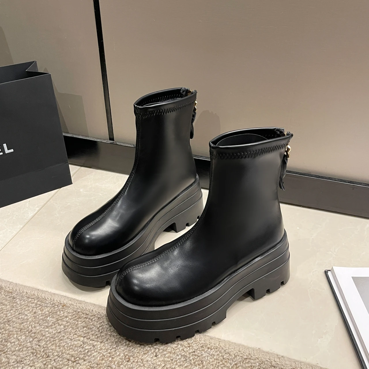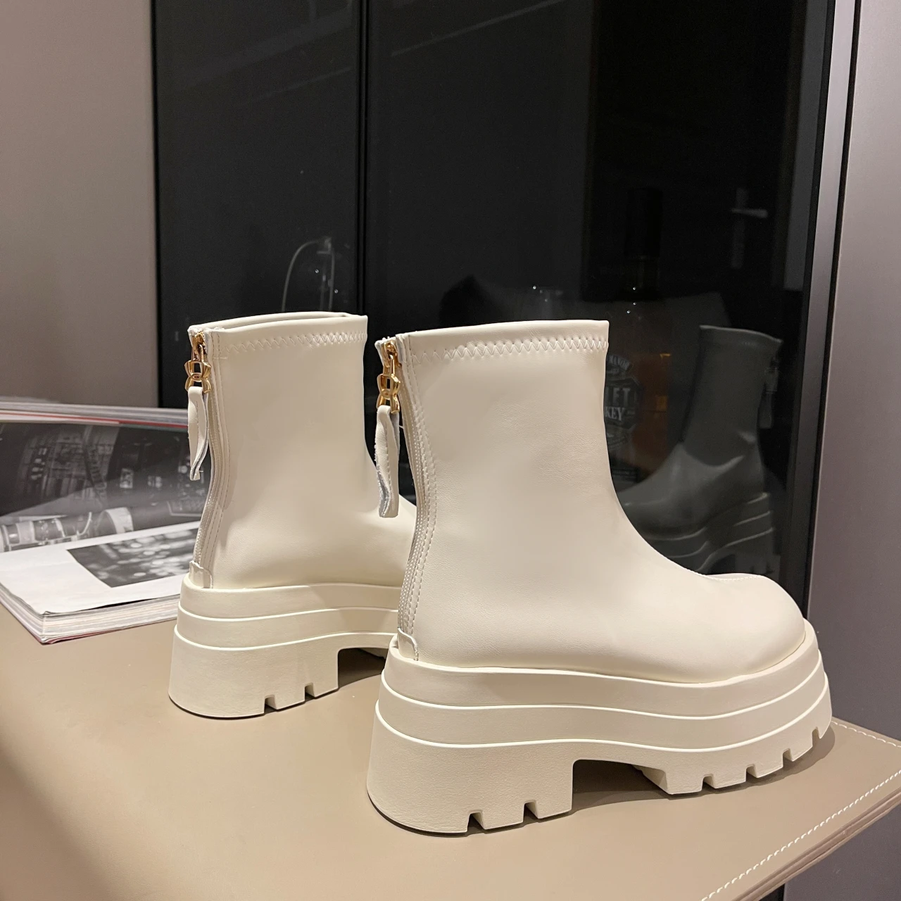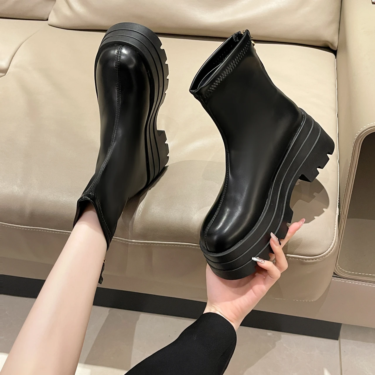 PU Leather Chunky Platform Ankle Boots 2024 Women Back Zipper Thick Heeled Short Boots Woman Black Punk Boots Ladies D113