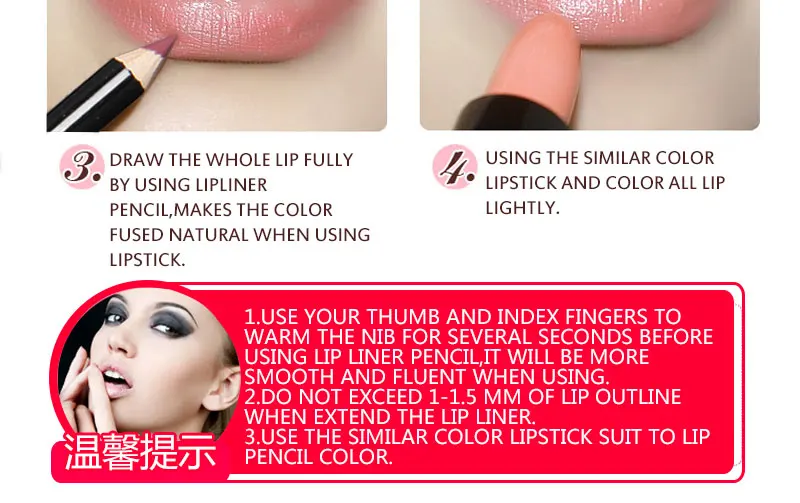 Lip liner pencil is soft, can shrink or enlarge lip shape, modify dark lip color