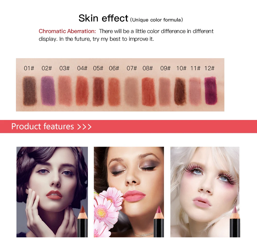 Product Name: 12 Color Matte Long Lasting Lip Liner Pencil Set