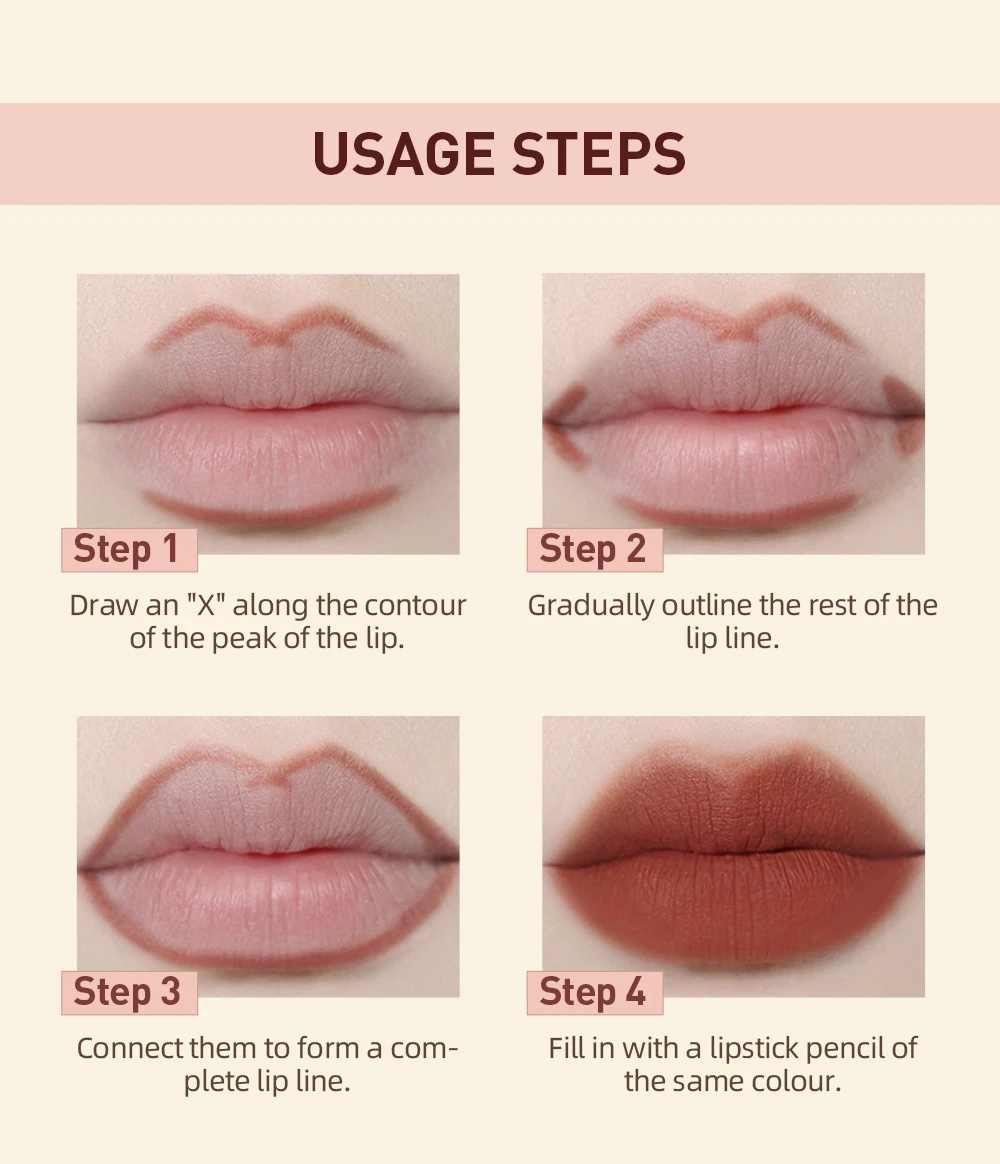 A combination of lip liner and lipstick for the ideal lip look that flatters the shape of your lips.