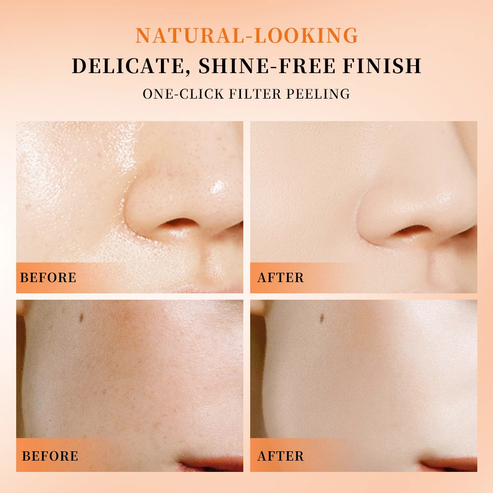 5. Soft matte,foggy soft focus,naturally conceals pores,even skin tone,one-click filter peeling.