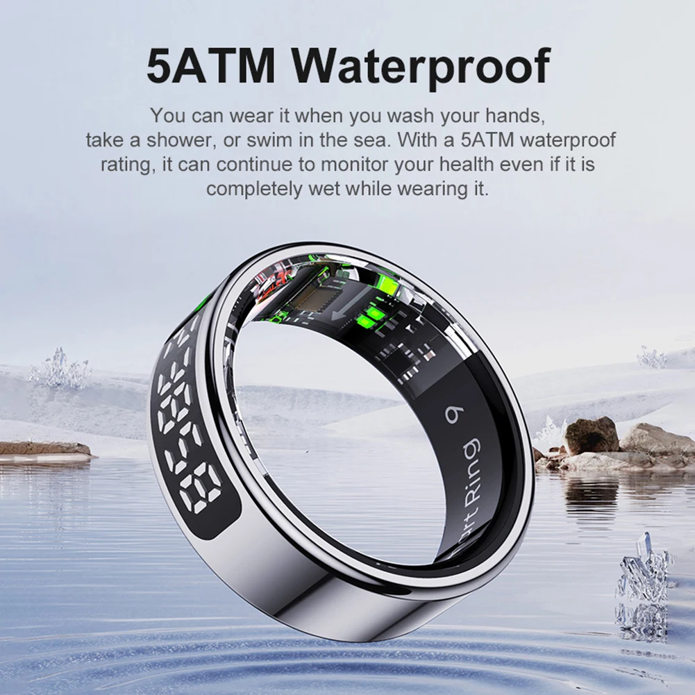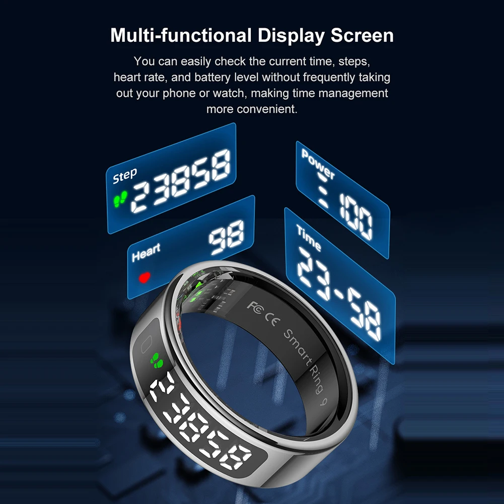 R11 Smart Ring with Display Screen and Touch Health Manager Wireless Charging Heart Rate Blood Oxygen Monitor Ring 5 ATM Waterproof Fitness & Sleep Monitor for Android & iOS