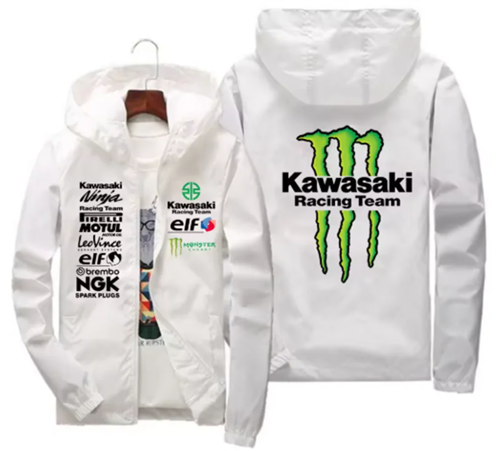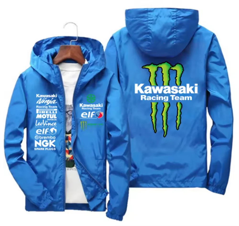 Racing team jacket with Kawasaki logo, men’s waterproof and windproof sportswear, 2025 new outdoor fashion fan jacket event