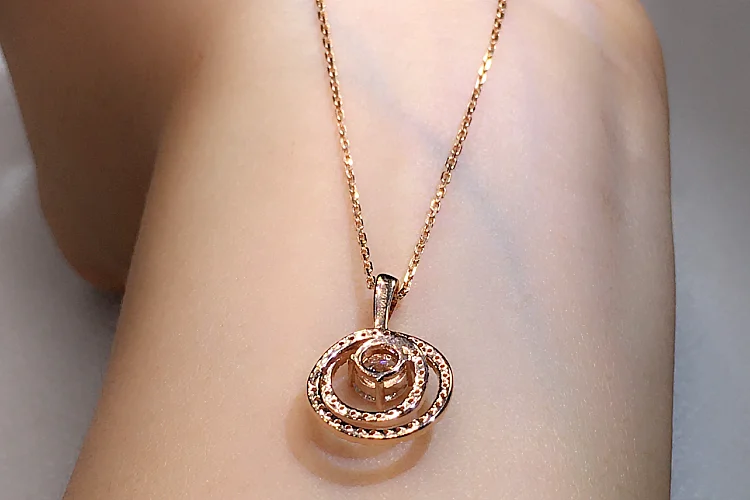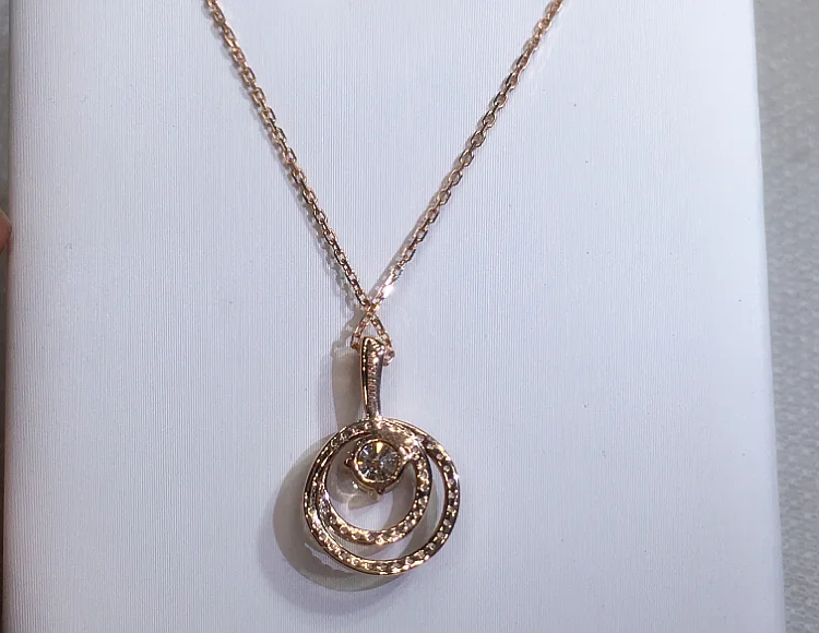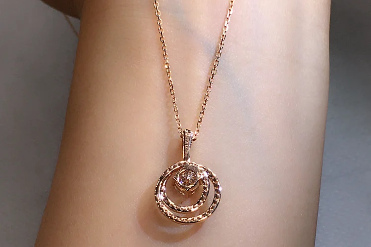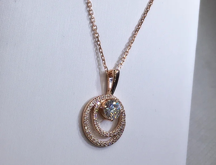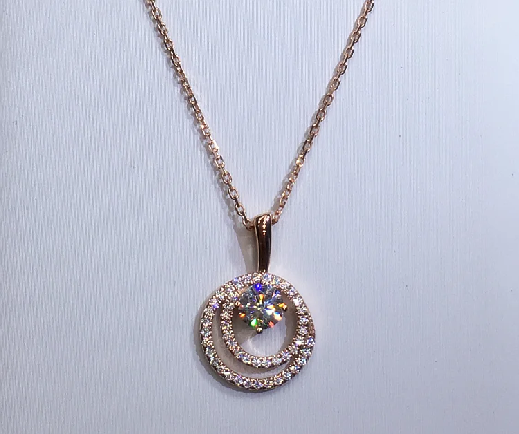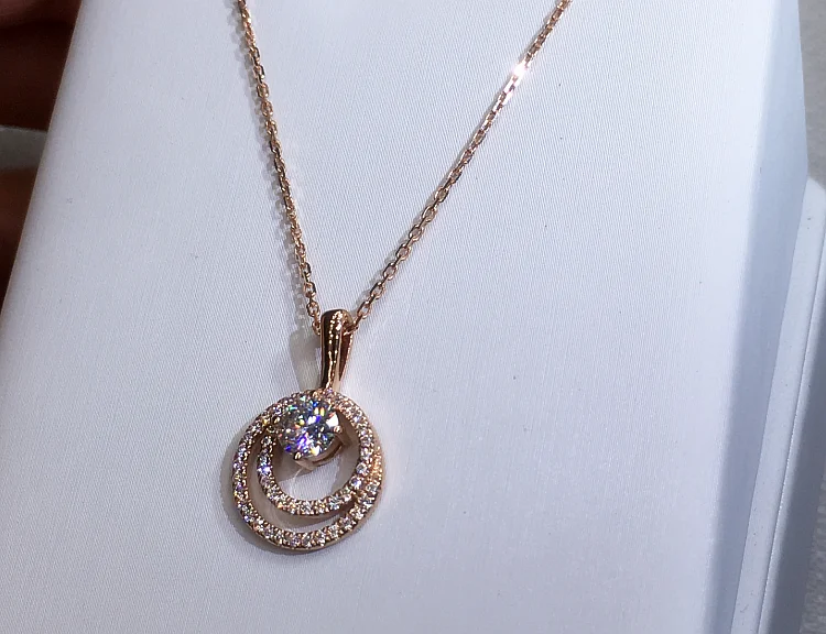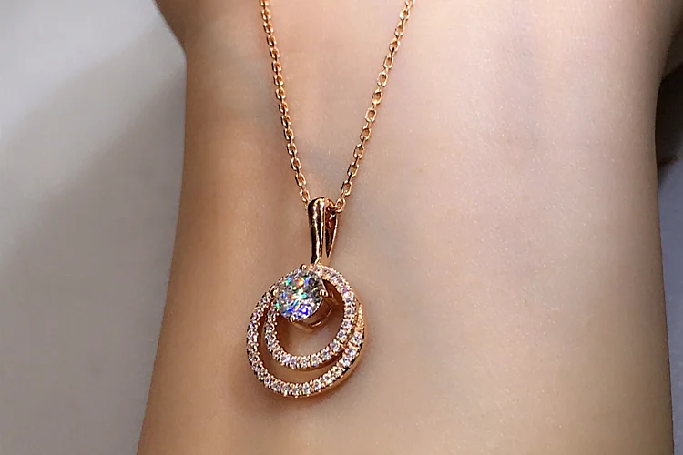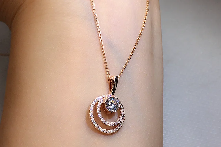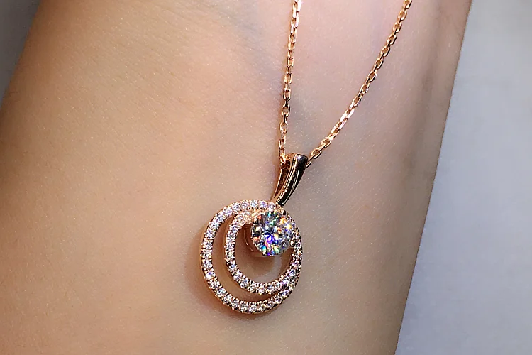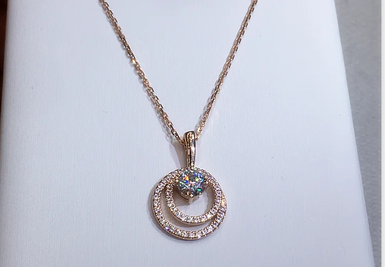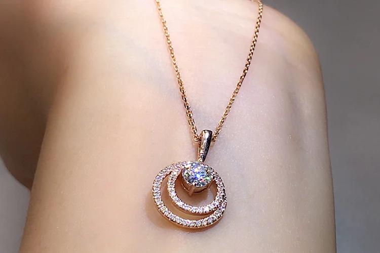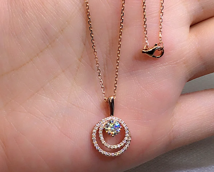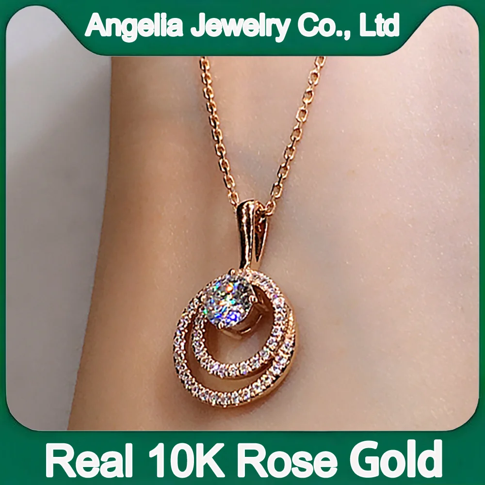 Real Solid 10K Gold Pendant Necklaces Women Engagement Anniversary Wedding Necklaces Moissanite Diamond Necklaces Two Circles