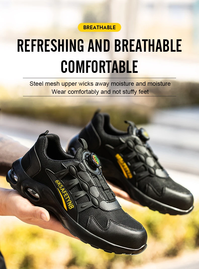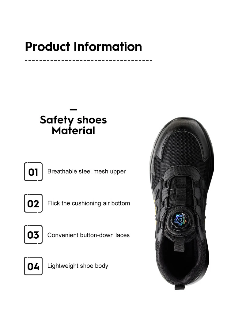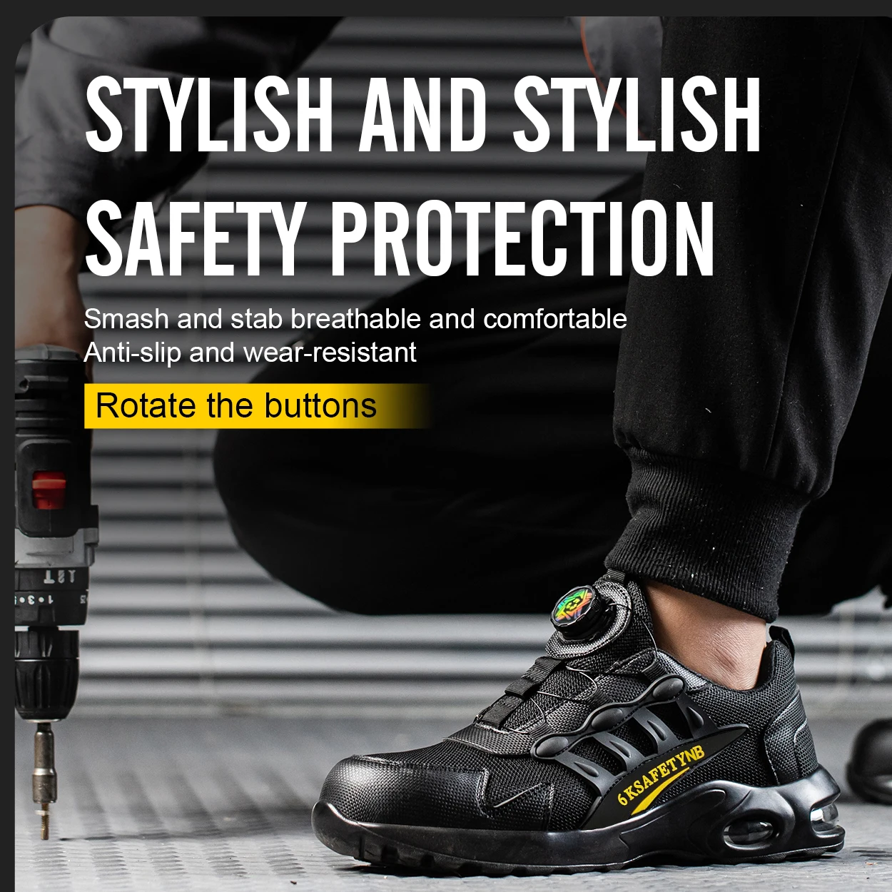 Rotary Buckle Unisex Work Sneakers Protective Shoes Lightweight Safety Shoes Puncture-Proof Anti-smash Steel Toe Men Work Boots