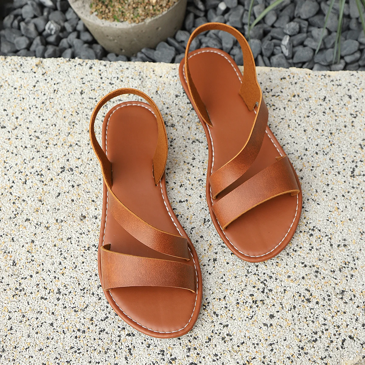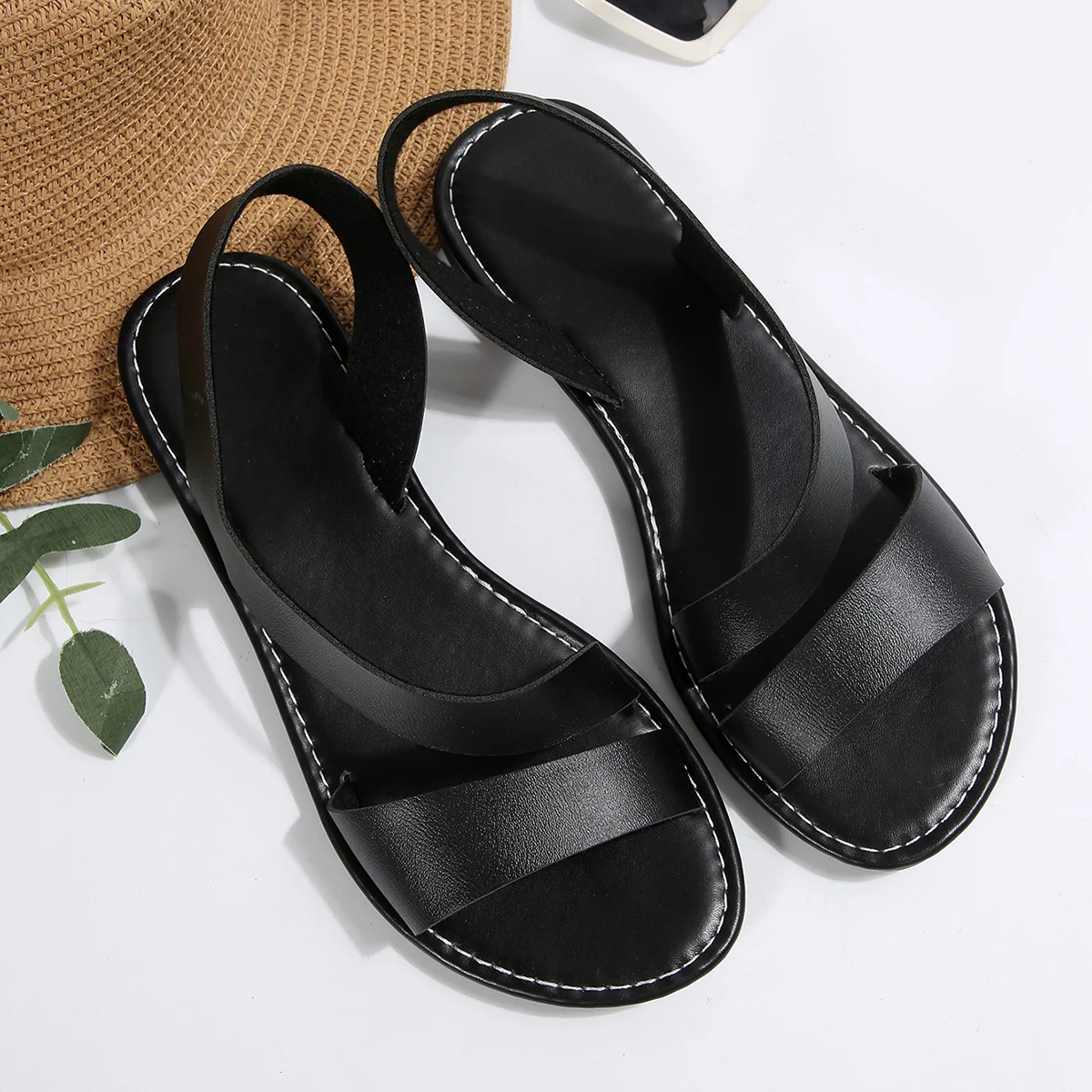 Round-toe flat sandals, solid color, simple and versatile summer walking shoes