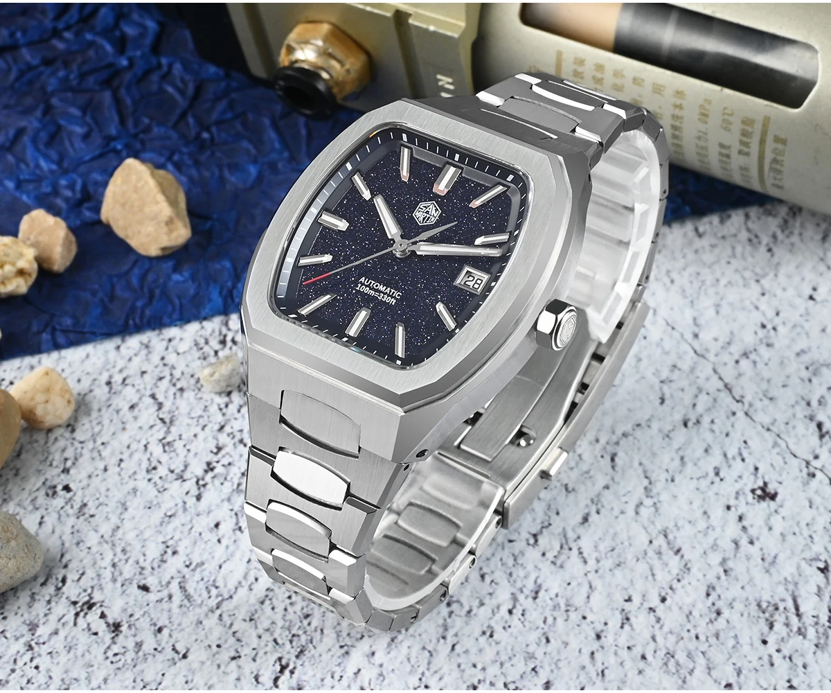 New Tonneau Eagle Eye Stone/Tiger Eye Stone/Aventurine/Malachite Mineral Dial Casual Sports Luxury Men Watch