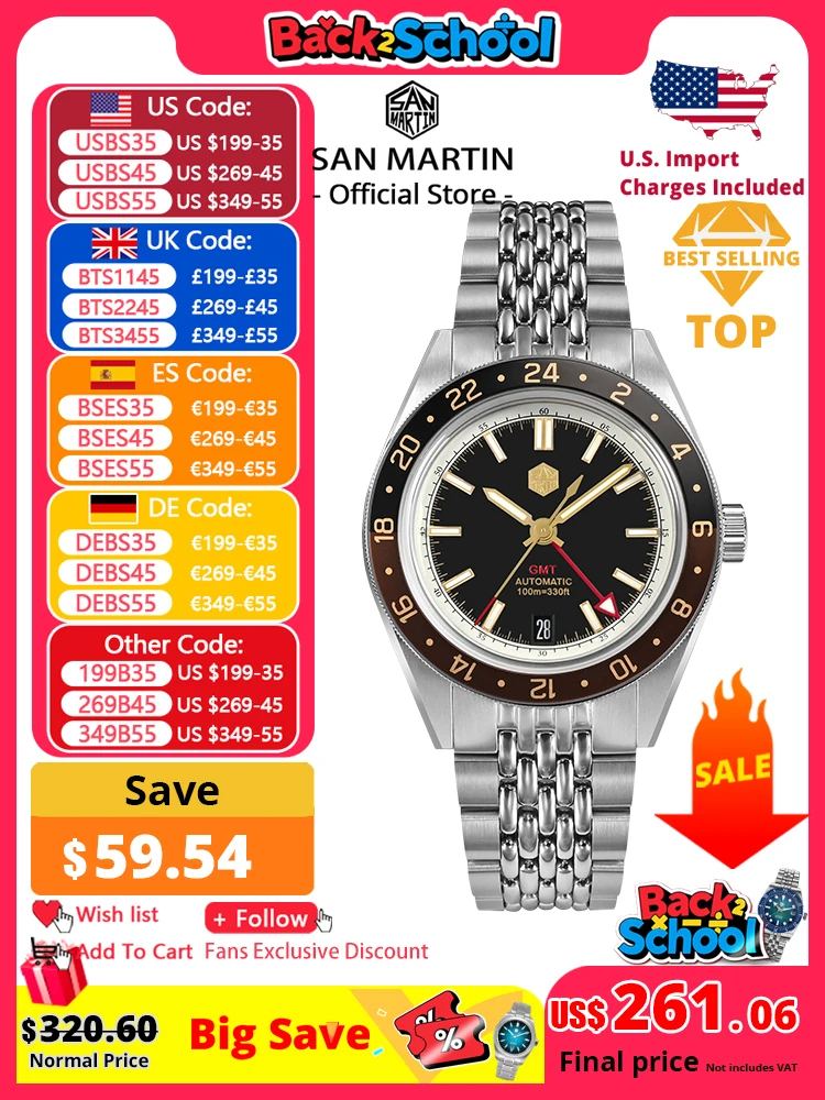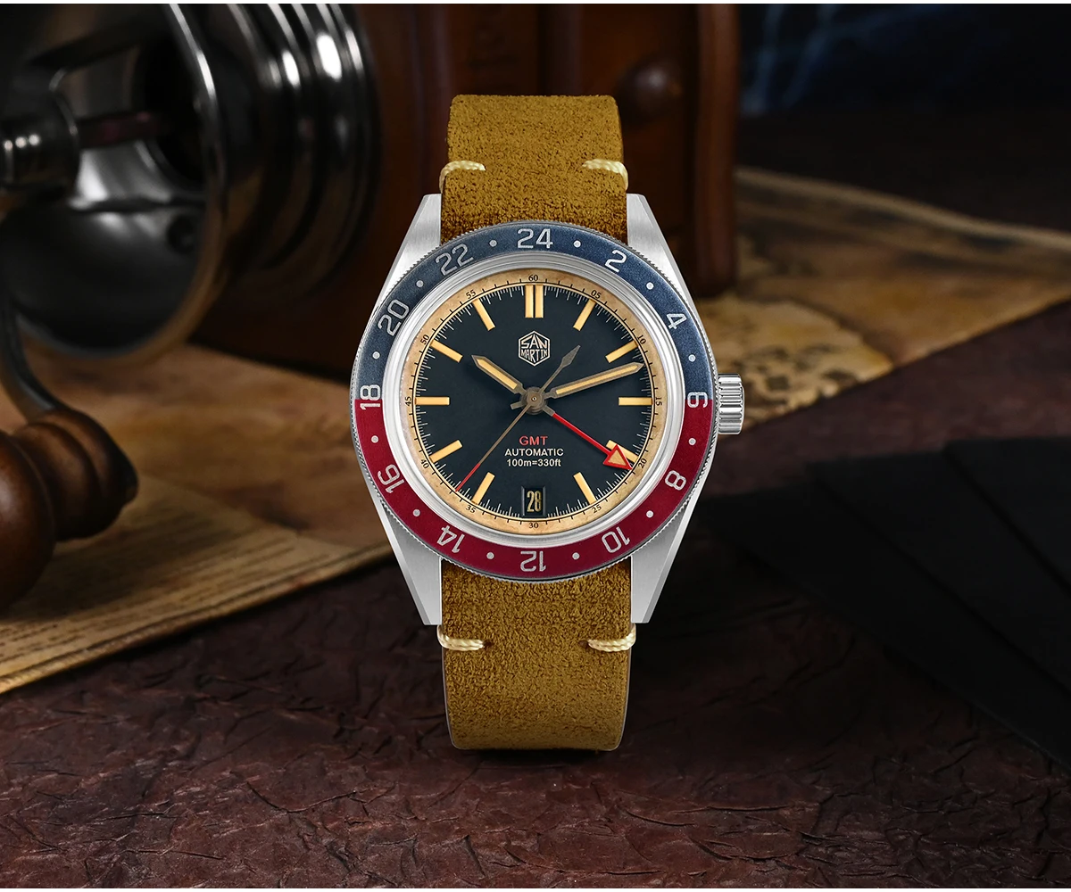 San Martin New 39.5mm NH34 GMT Men Watch Bidirectional Aluminum Bezel Luxury Automatic Mechanical Sapphire 10Bar Luminous SN0116