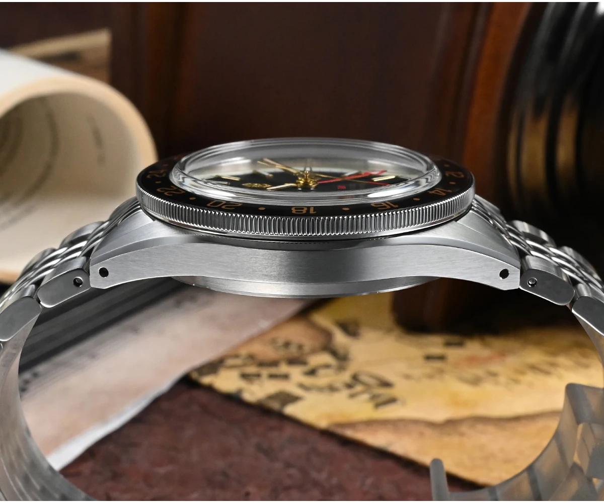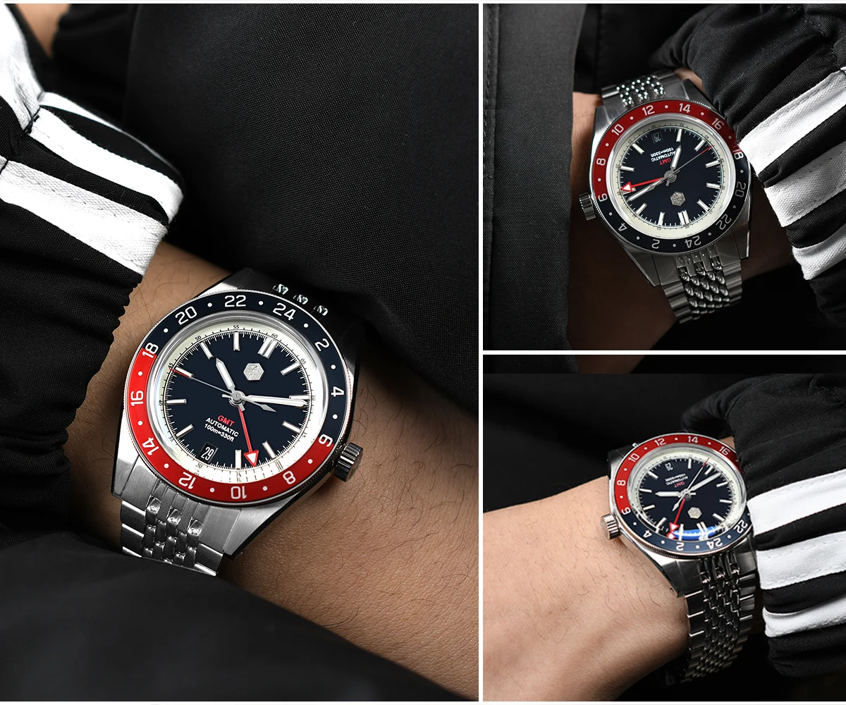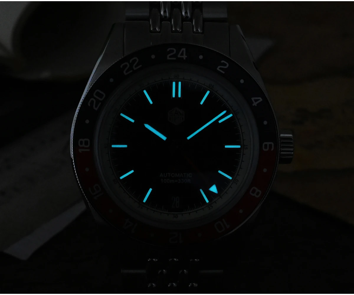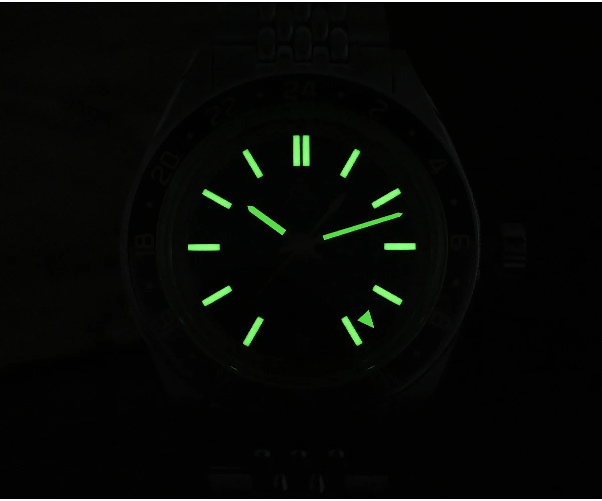 New NH34 GMT Luxury Men’s Watch, Bidirectional Aluminum Bezel, Luminous Effect: BGW-X1 Blue Light, Hands and Markers