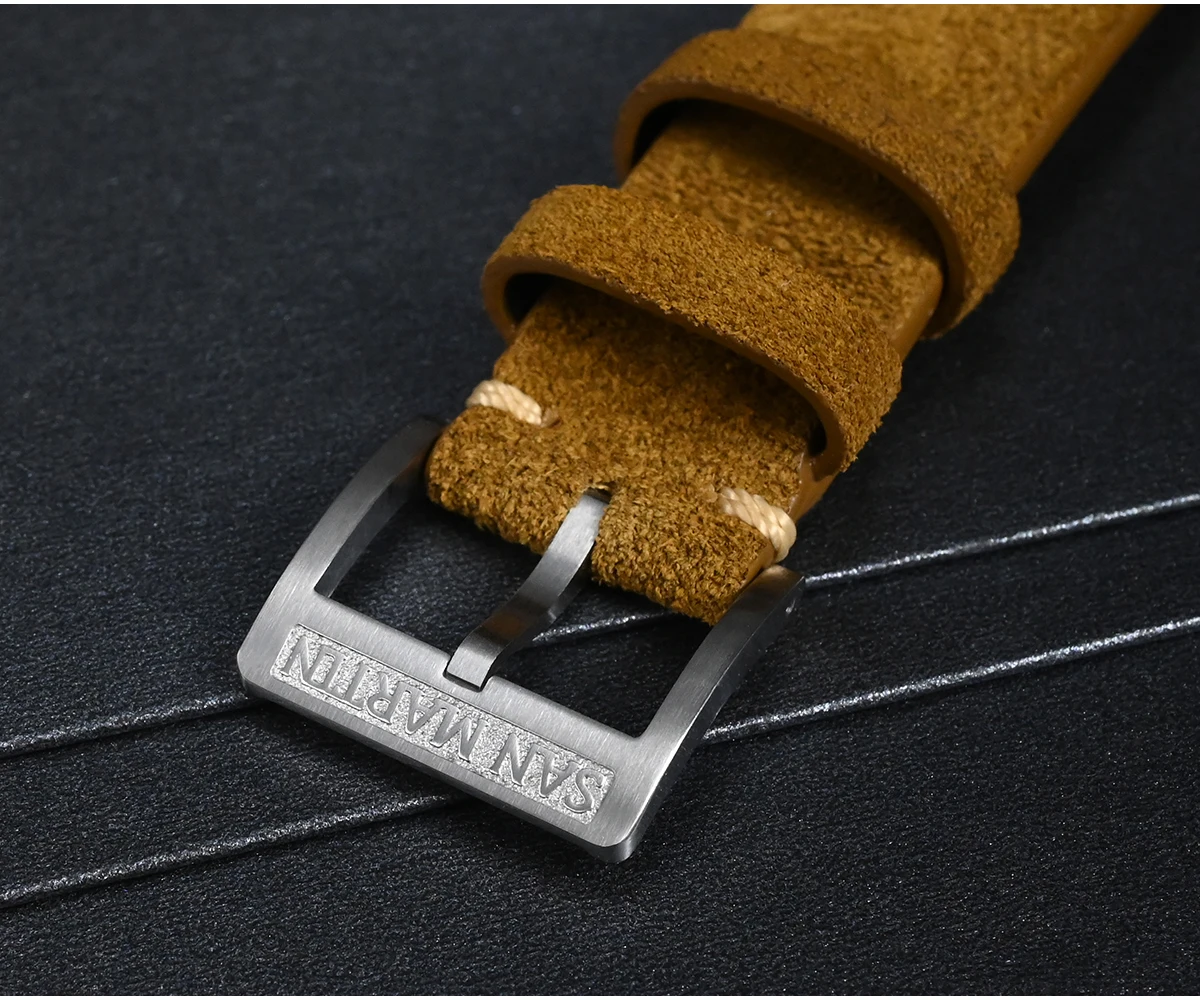 Vintage Leather Strap, 316L Stainless Steel Buckle, With SAN MARTIN Logo