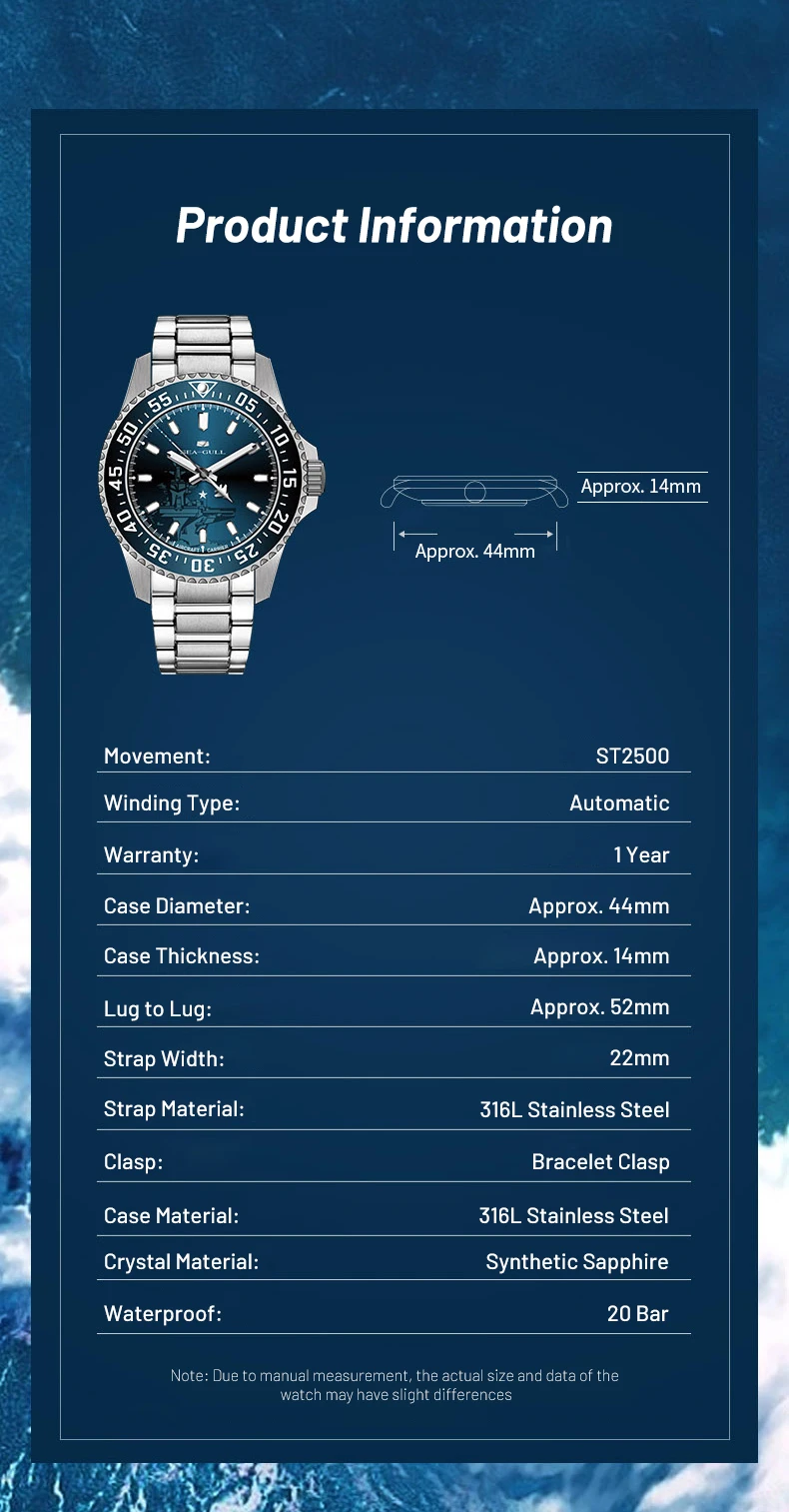 Seagull 44mm Diving Men Watches Automatic Mechanical Watch Sapphire Ocean Series 200M Waterproof Top Brand 816.32.1083 reloj hombre