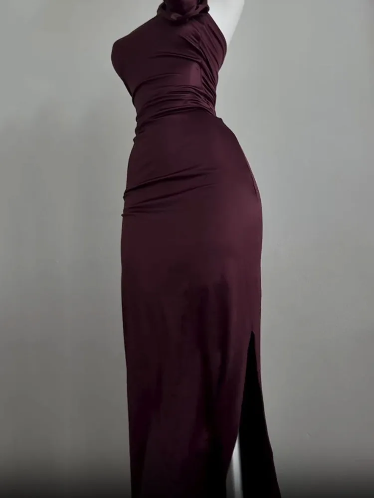 The backless design adds an element of surprise and allure, making it ideal for those seeking a daring yet chic look.