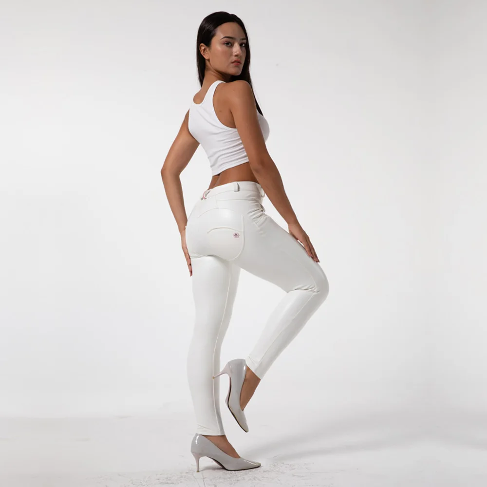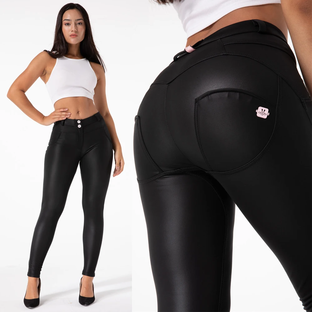 Melody Women Faux Leather Pencil Pants Streetwear Slim Fit Bodycon Trousers Casual Skinny White Elastic Women Pants 8 Colors