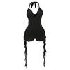 Sheer Mesh Patchwork Ruffles Ribbon Slim Halter Playsuits Women Sexy V-neck Sleeveless Backless Holiday Beach Rompers Clubwear