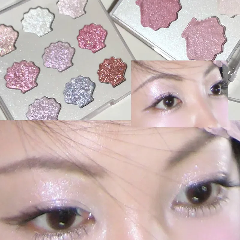 Shell 9-color Full Pearlescent Eyeshadow Palette Sparkling Sequin Pink Blue Purple Shimmer Highlight Metallic Eye Shadow Glitter