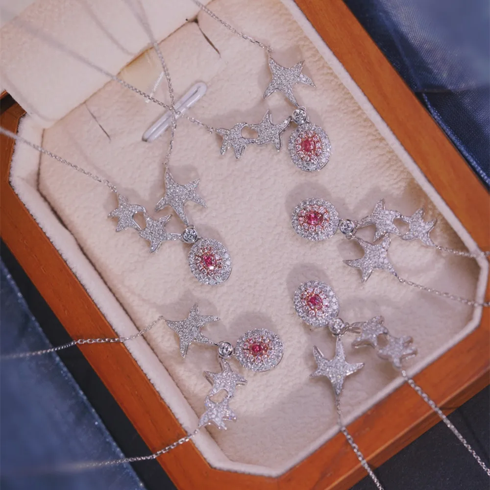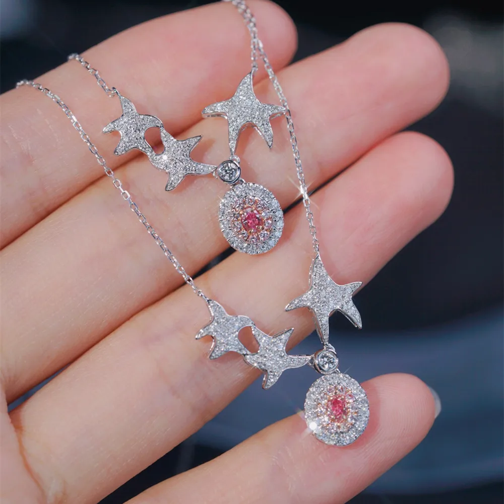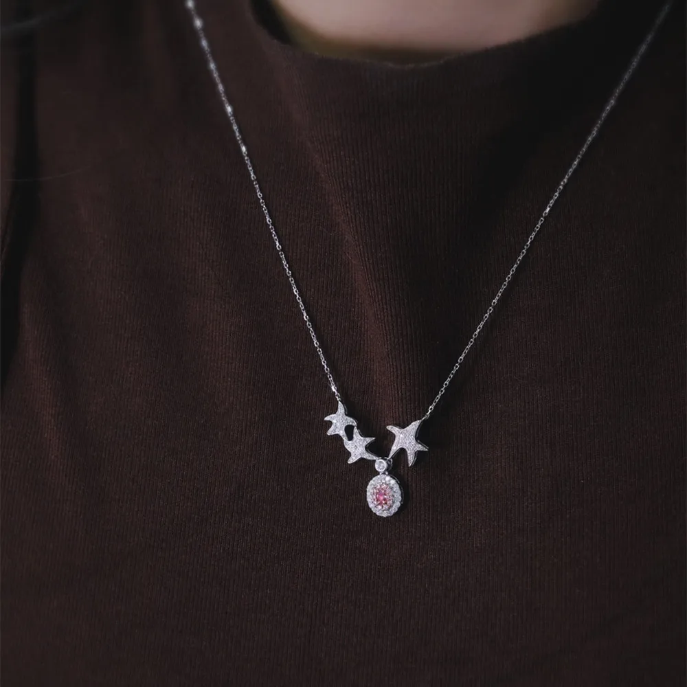 Shelly Romantic Real 18K Solid White Gold AU750 Jewelry Star Oval Natural Pink Diamond Pendant Necklaces for Women Girl Gift