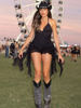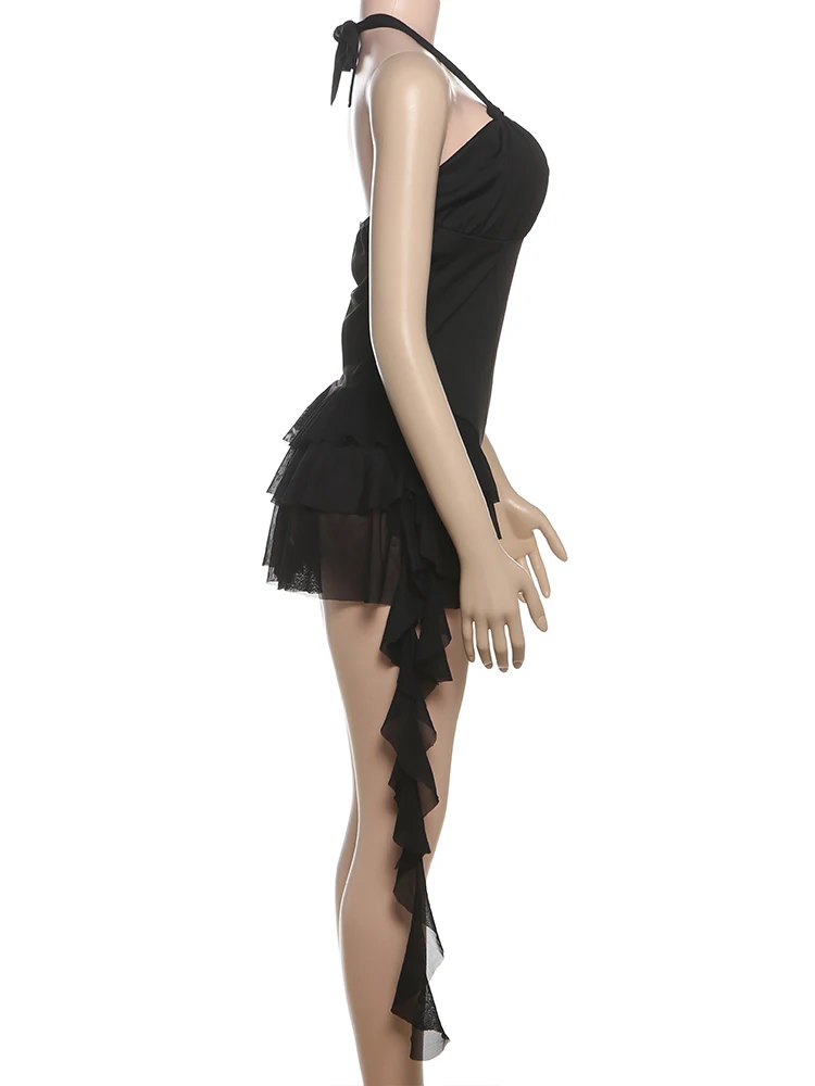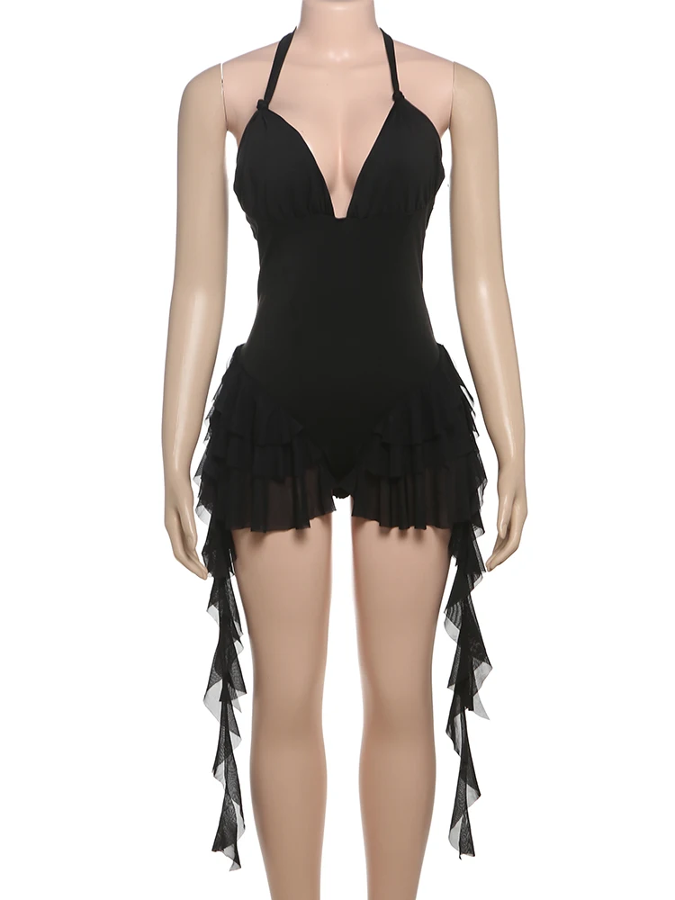 Sisterlinda Ruffle Tassel Playsuits Sexy Hot Halter V-neck Cleavage Backless A-line Rompers Solid Simple Female Party One Piece