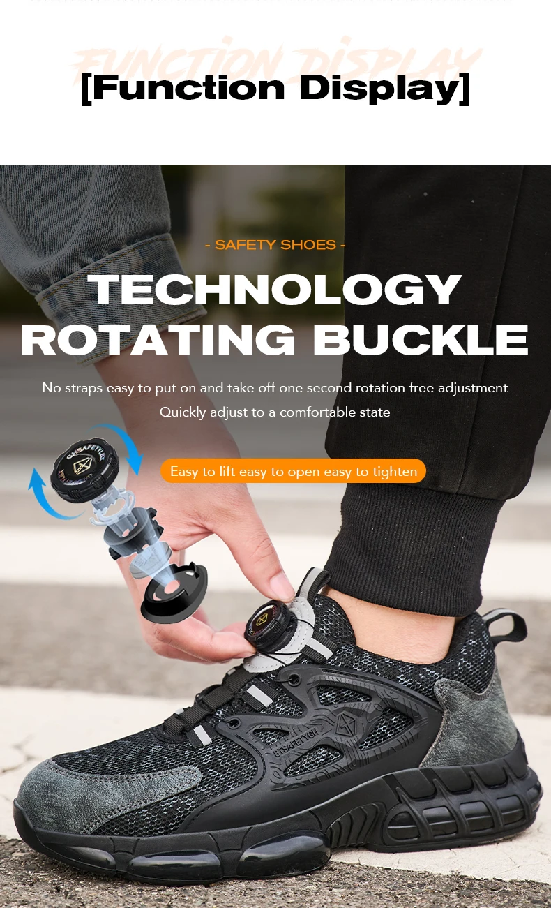Size 47 48 Work Safety Shoes Men Reflective Design Steel Toe Shoes Rotation button Work Sneakers Protective Safety Boots