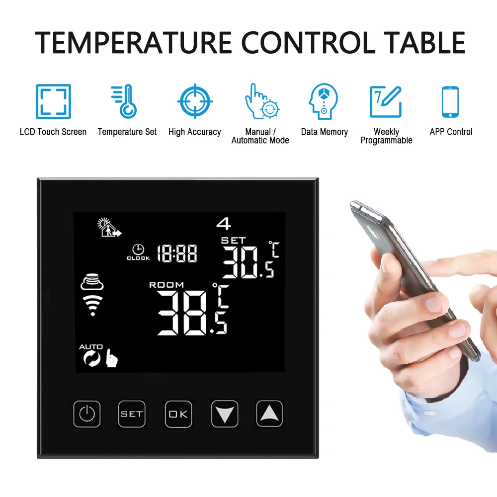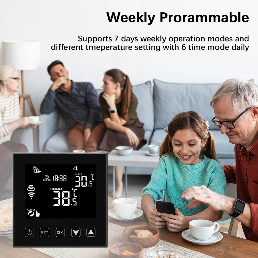 6 period programmable controlling temperature setting.