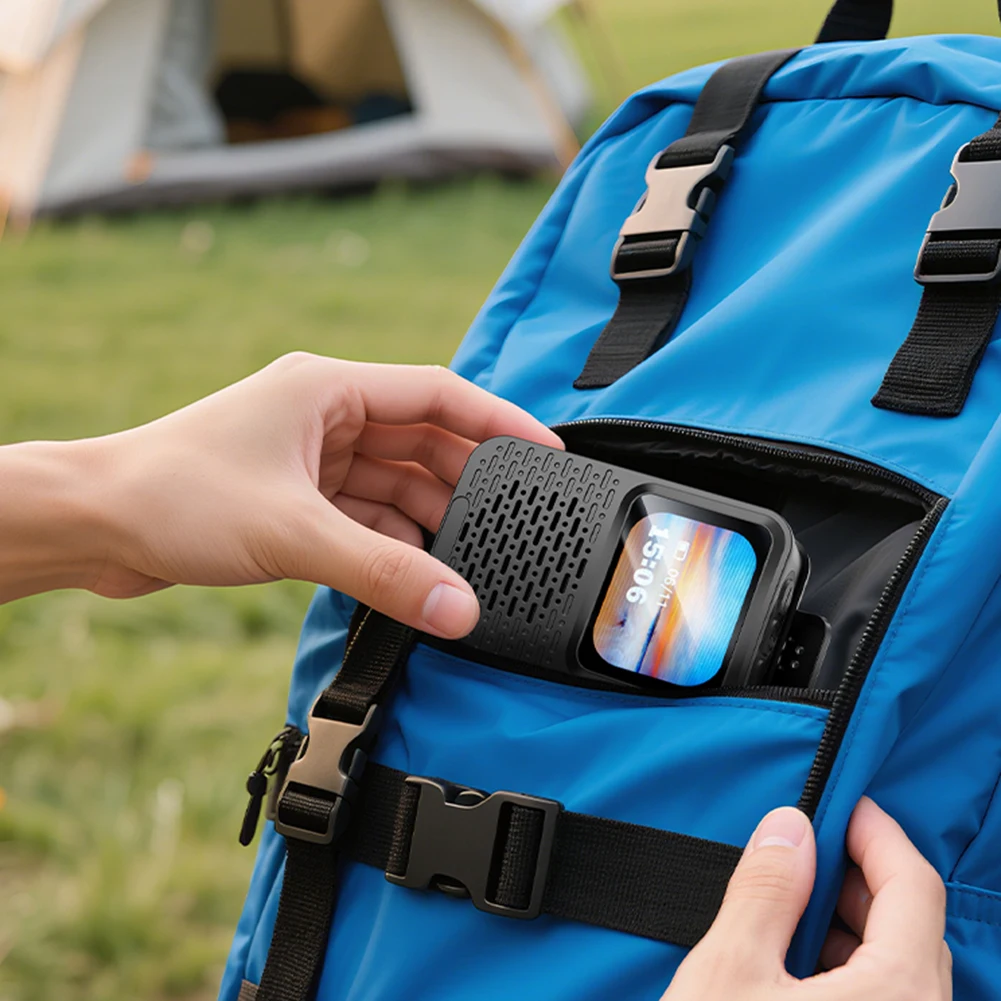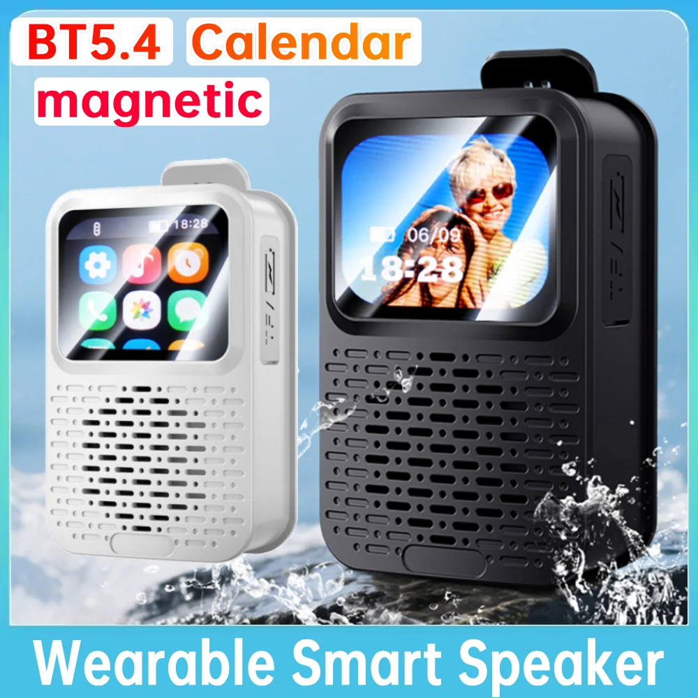 Features: 1.Versatile Functionality: Seamlessly control multiple functions including checking the weather, calendar, and customizing alarms with this wearable touch screen alarm clock. 2.Bluetooth-Compatible 5.4 HD: The bluetooth-compatible 5.4 chip of this wireless speaker provides extended transmission distance, low power consumption, and stable signal for true wireless freedom. 3.IPX5 Waterproof: Whether at outdoor parties, beach celebrations, or walking in the rain, effortlessly handle all challenging environments with our powerful bass subwoofer. 4.Magnetic Clip Design: The magnetic clip subwoofer easily attaches to magnet-supported items, and with a magnetic sheet, daily usage becomes more convenient. 5.Compact & Portable: Weighing approximately 130g, this mini-sized soundbar wireless music player is lightweight, handheld, and easy to store in your pocket or hang on your bag.