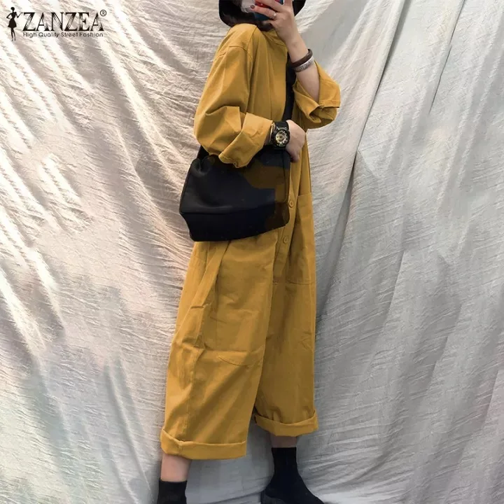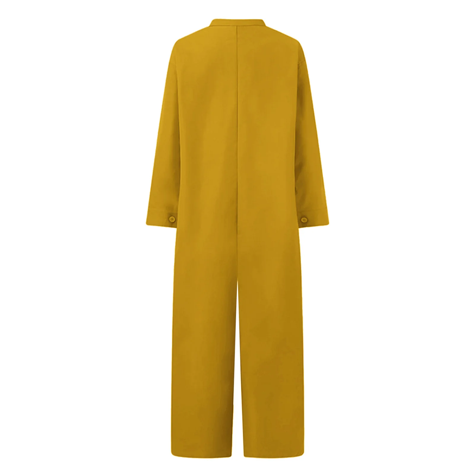 Solid Color Casual Loose Pocket Jumpsuit Women New Fall Simple Long Sleeve Shirt Female Vacation Rompers Fashionable Streetwear