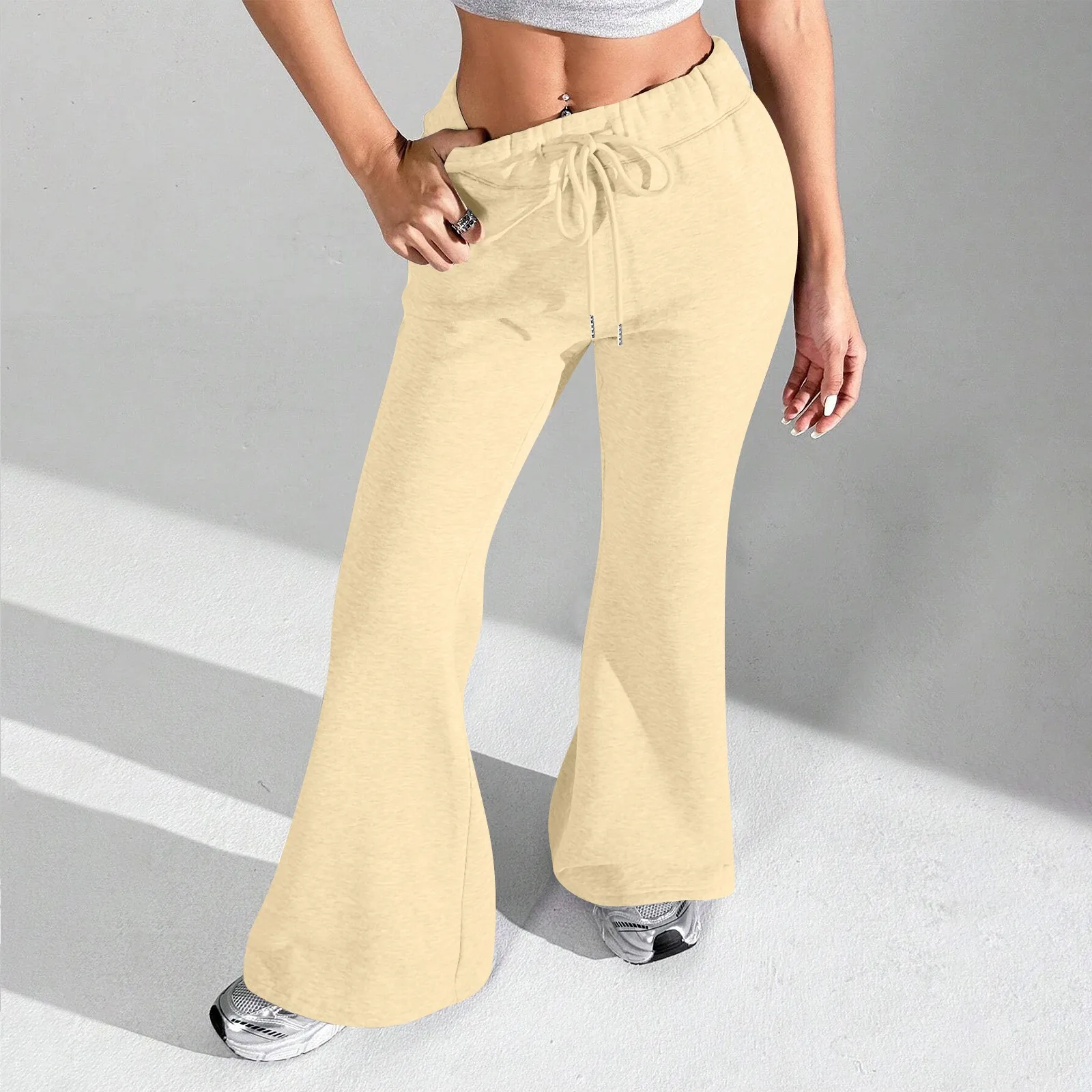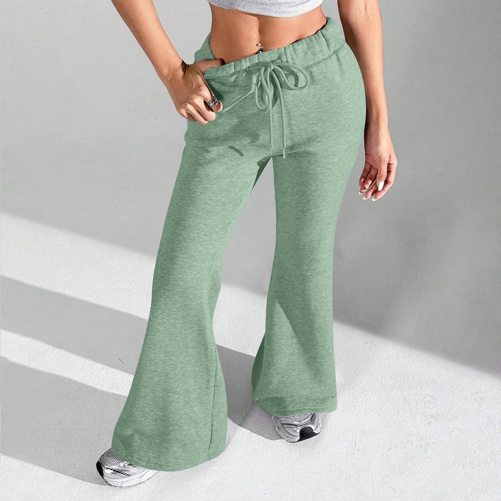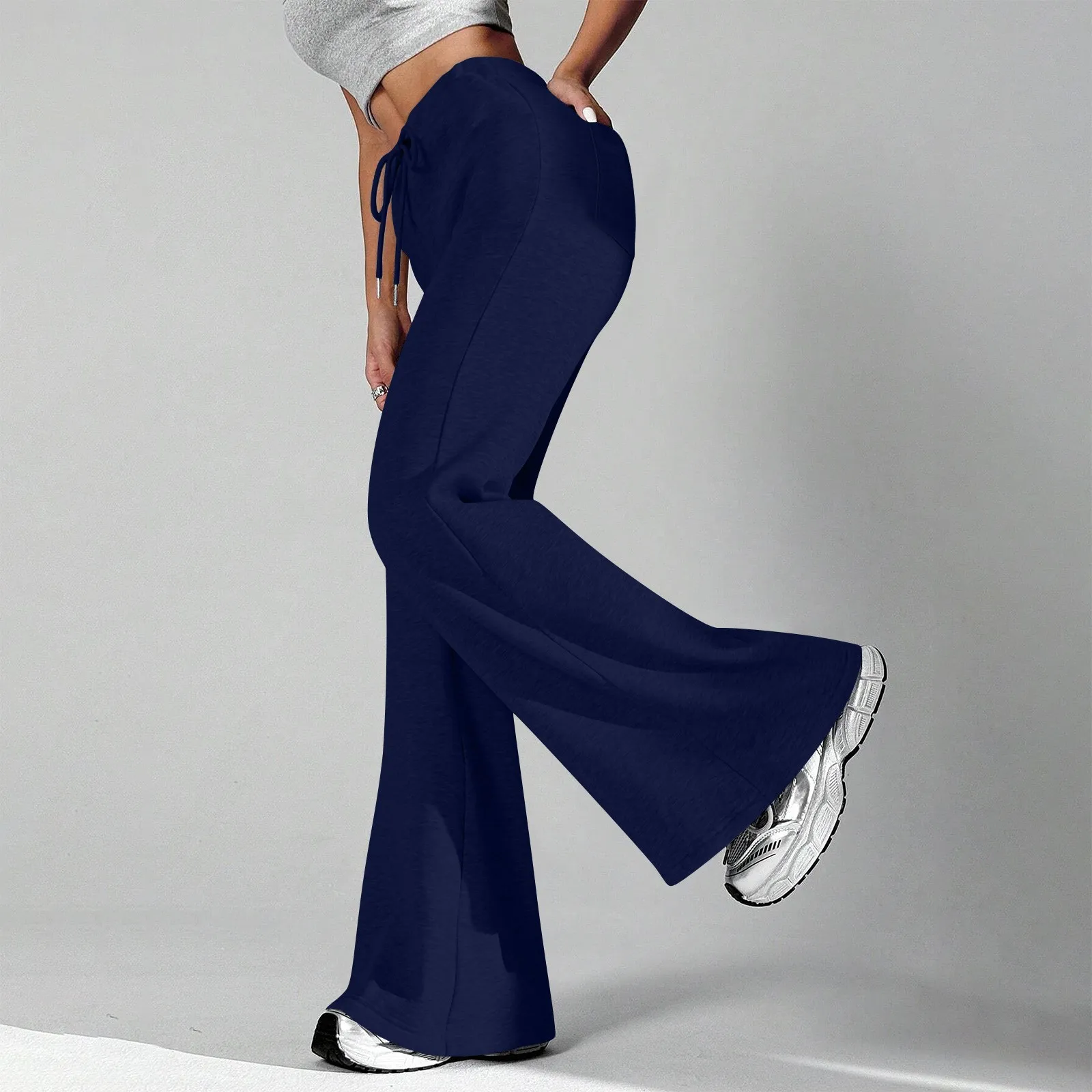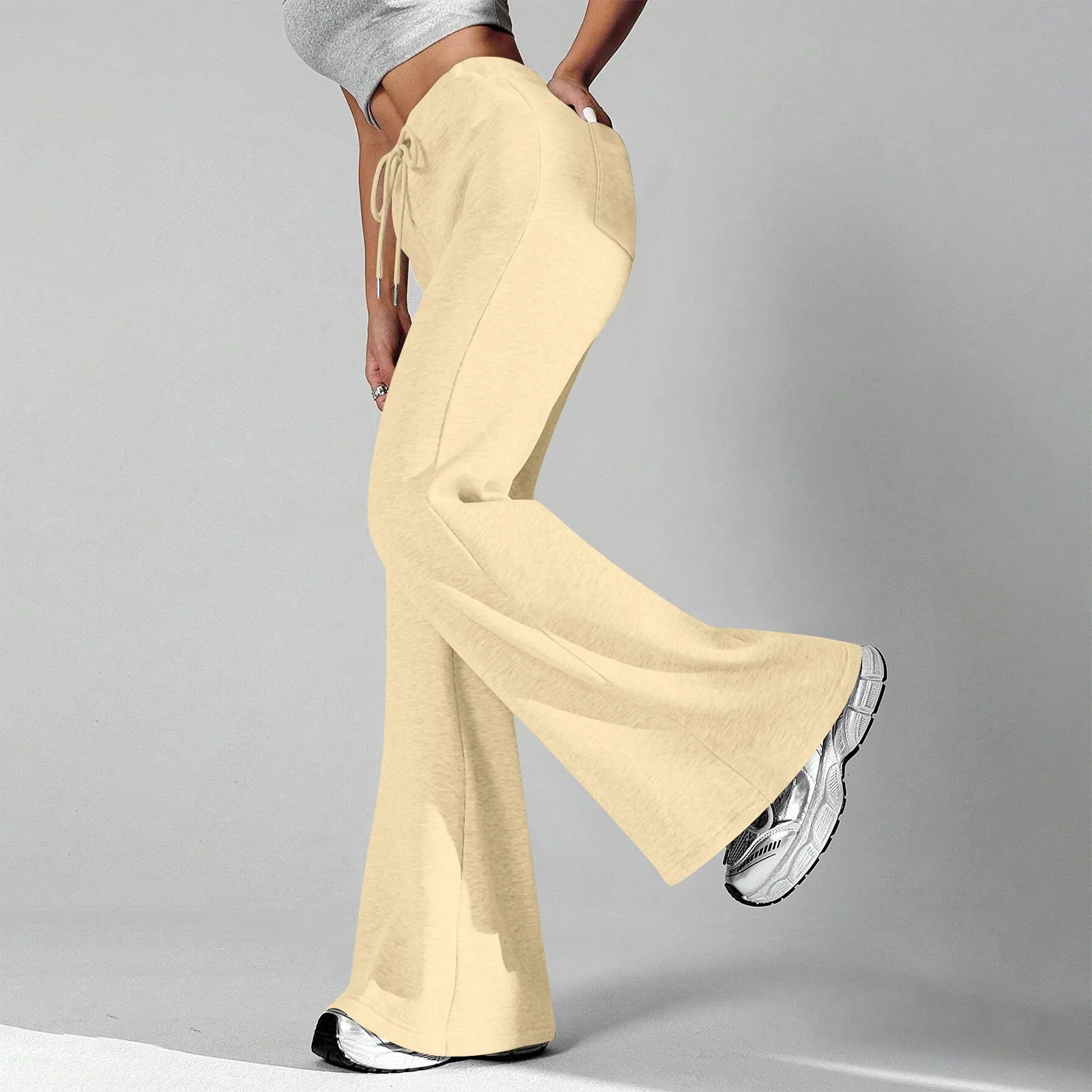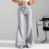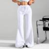 Ladies Fashion Loose Draw String Waist Solid Color Cargo Pants Leisure Flares
