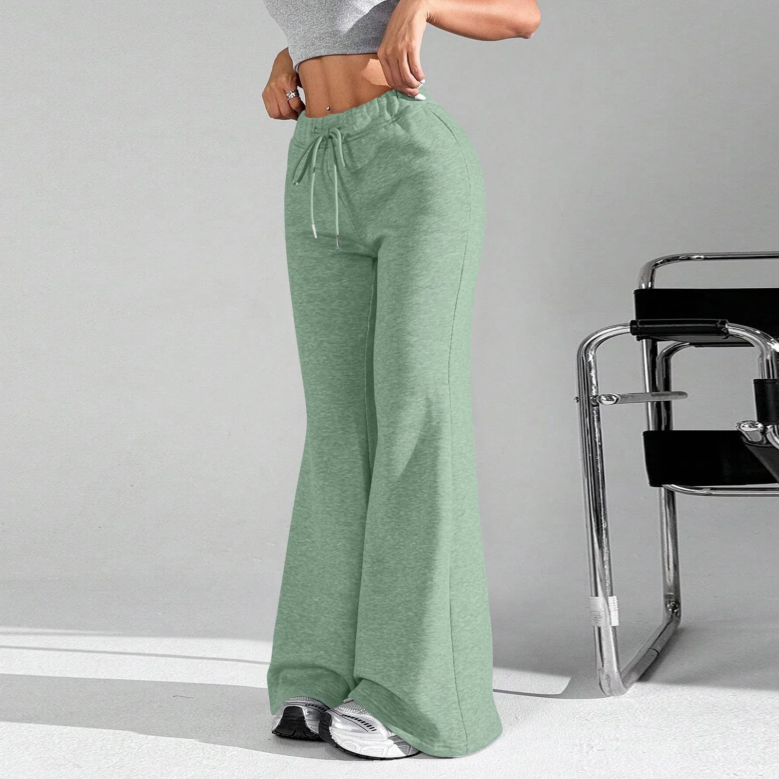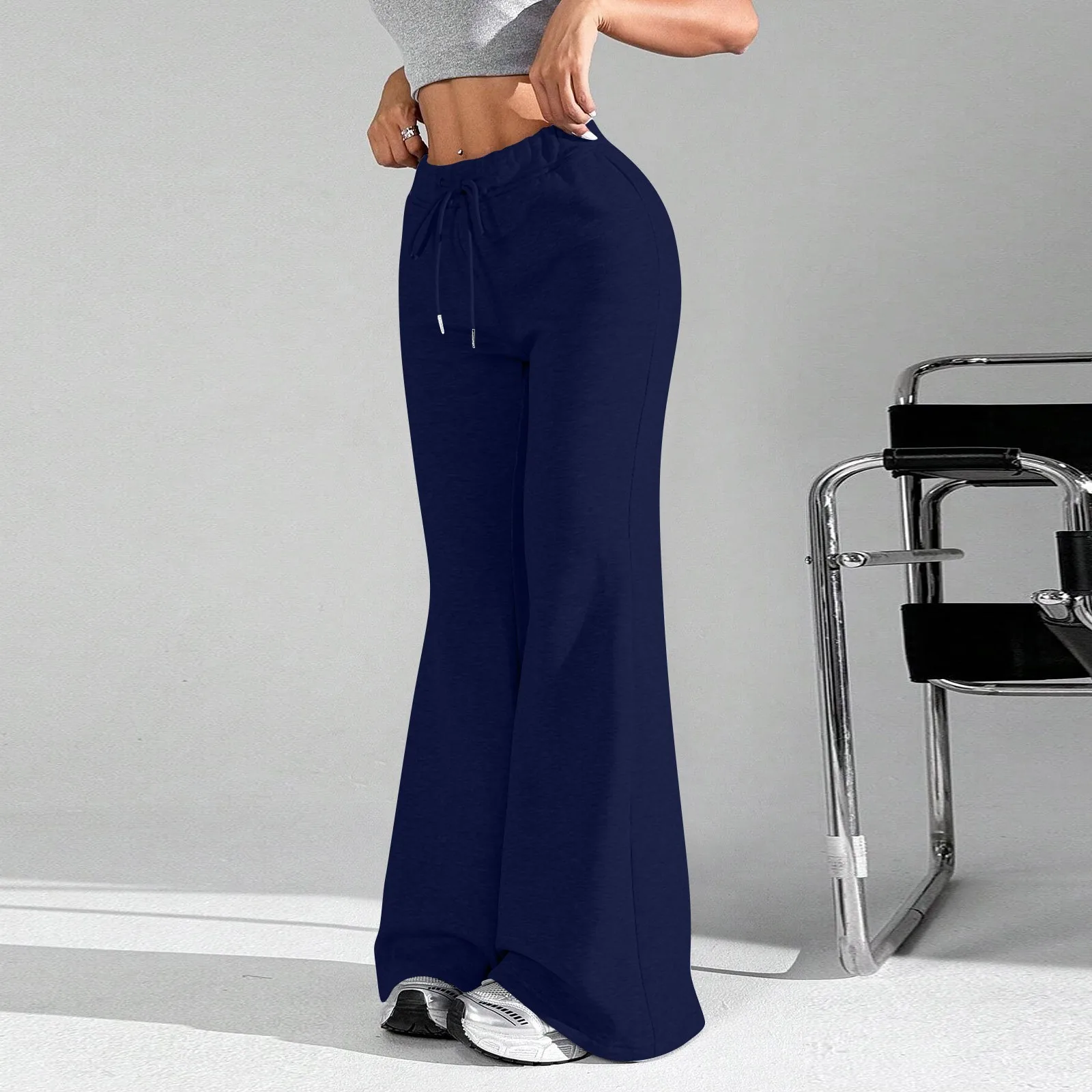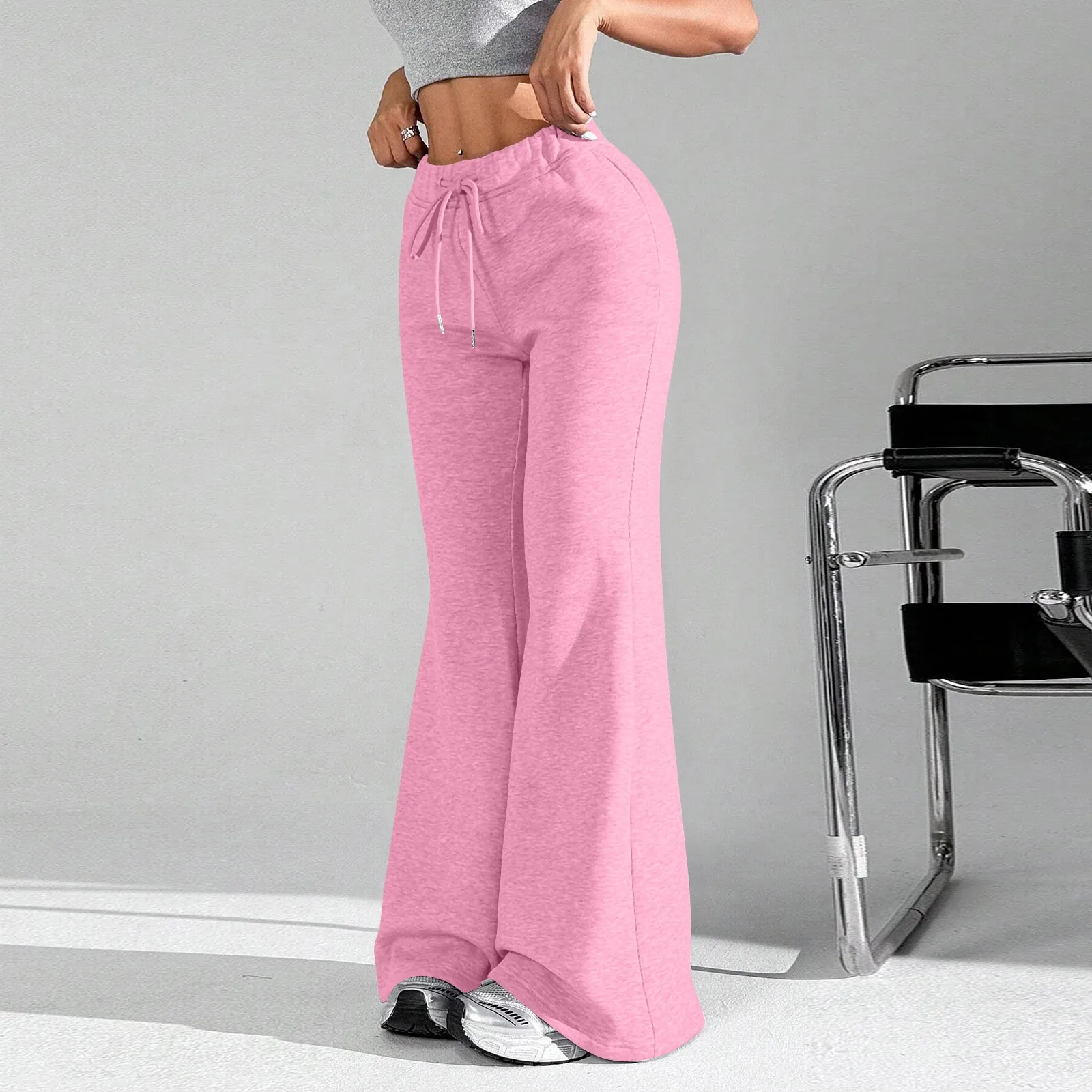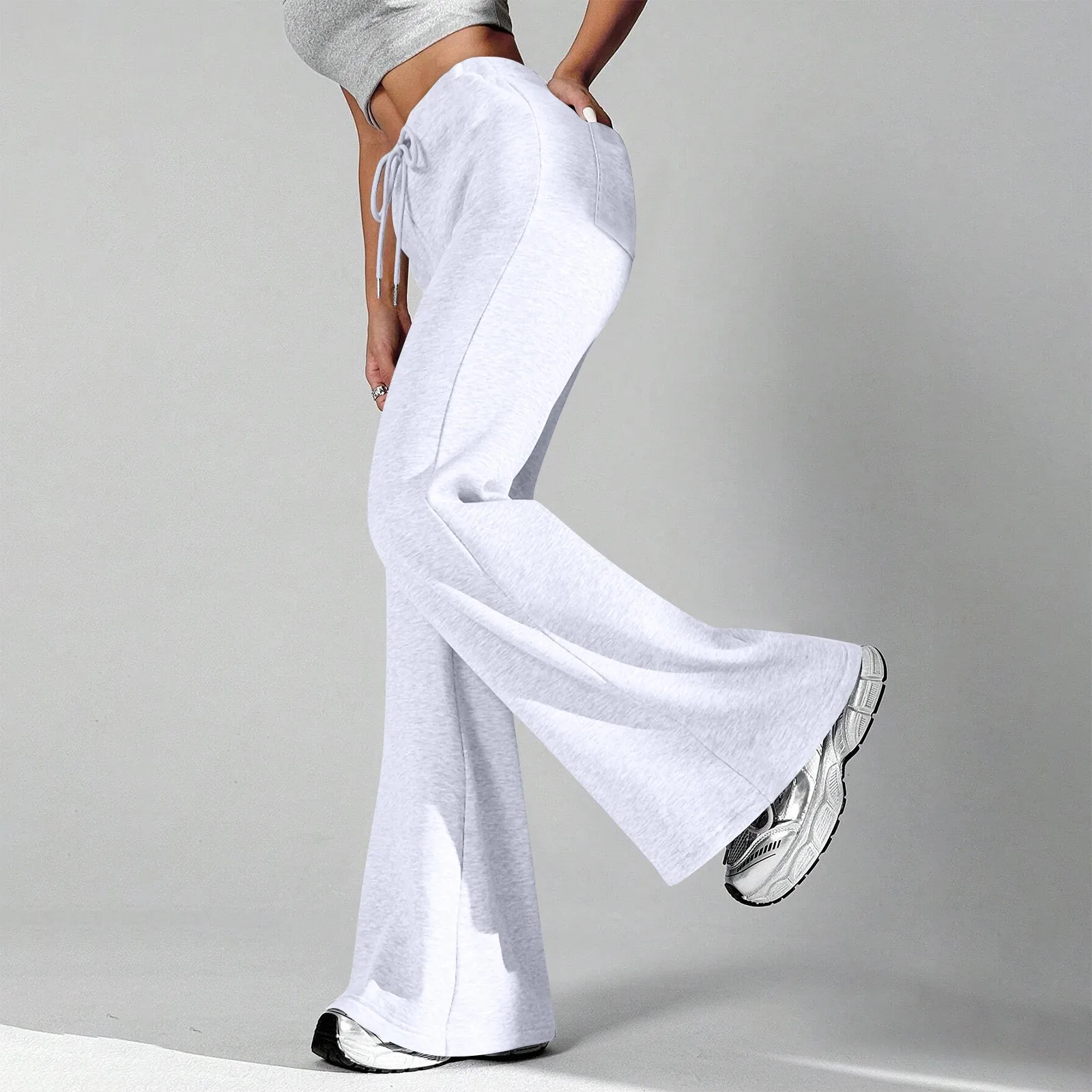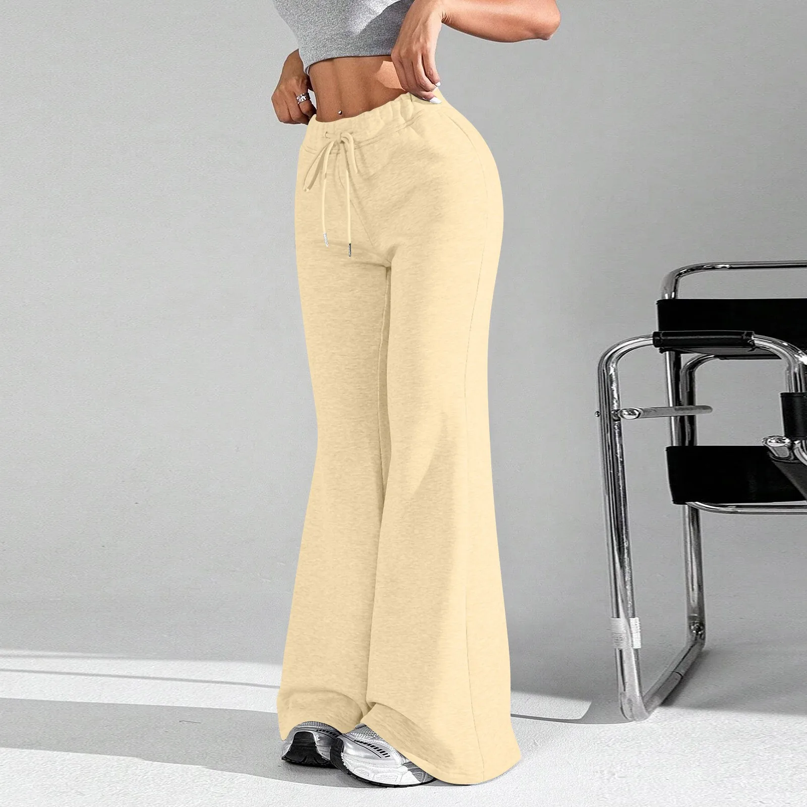 Ladies Fashion Loose Draw String Waist Solid Color Cargo Pants Leisure Flares