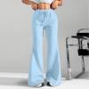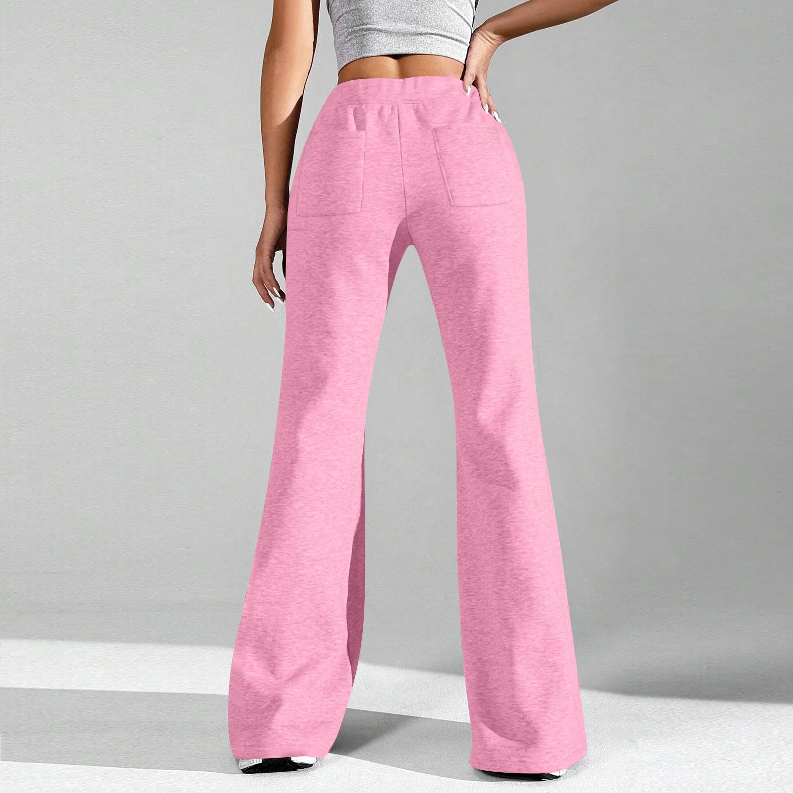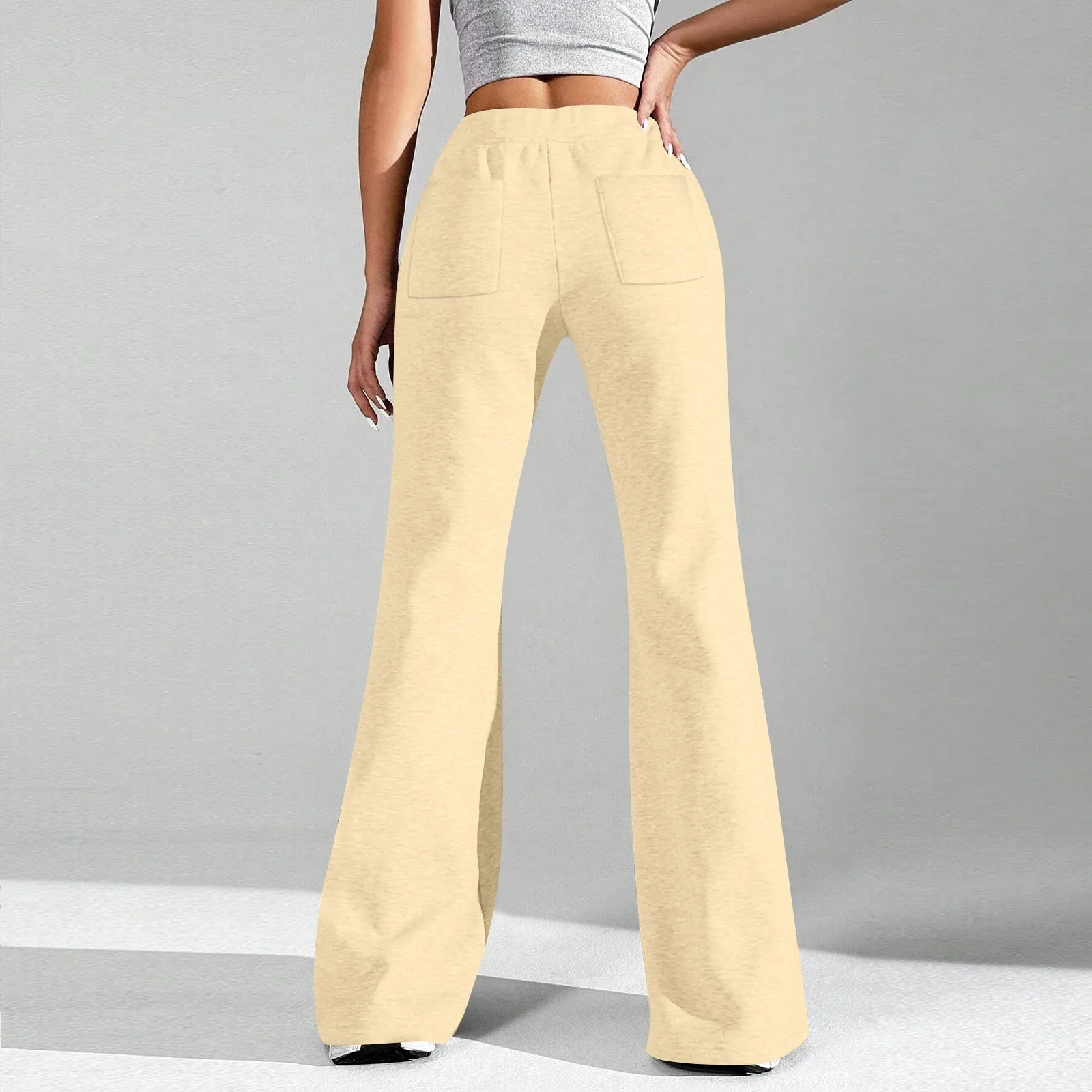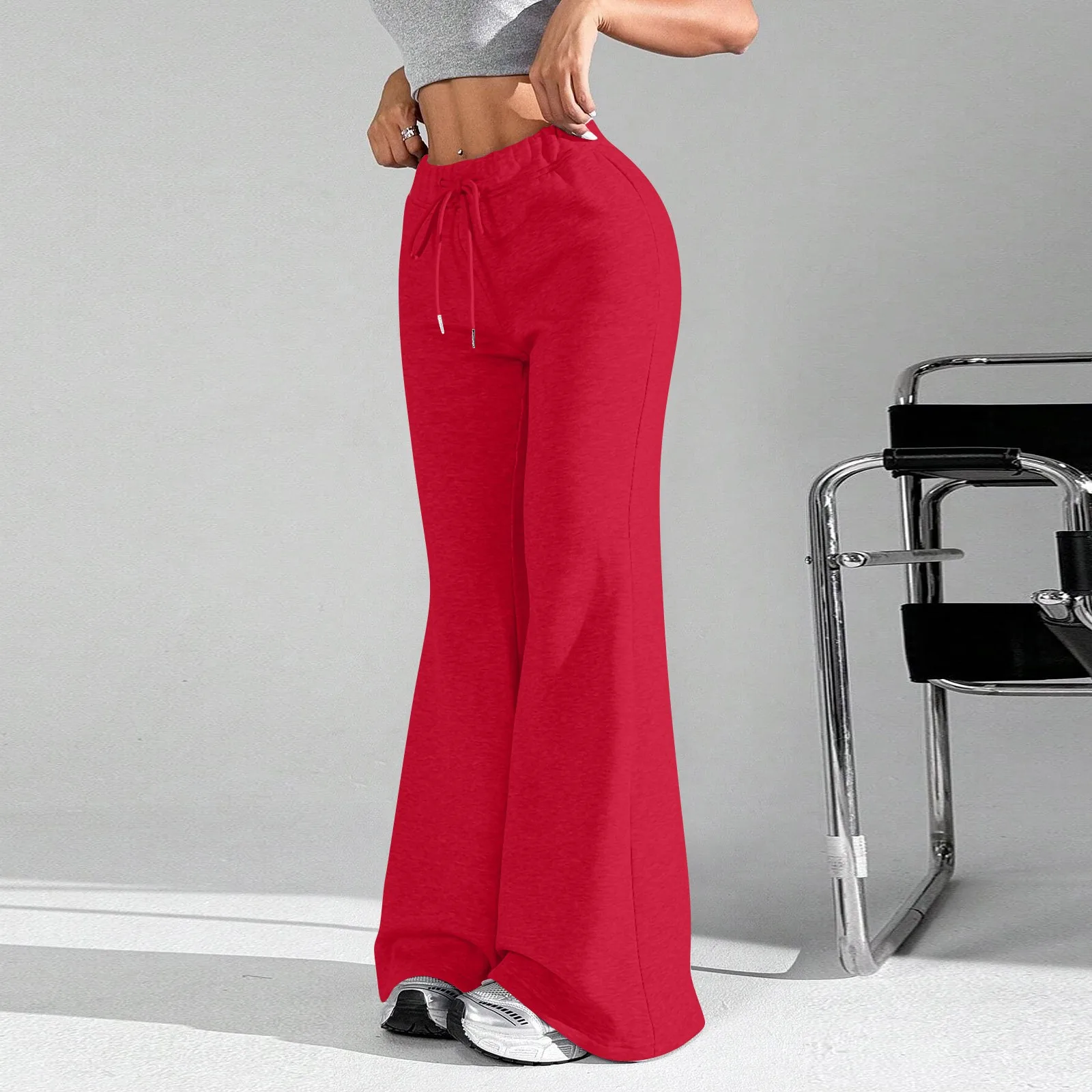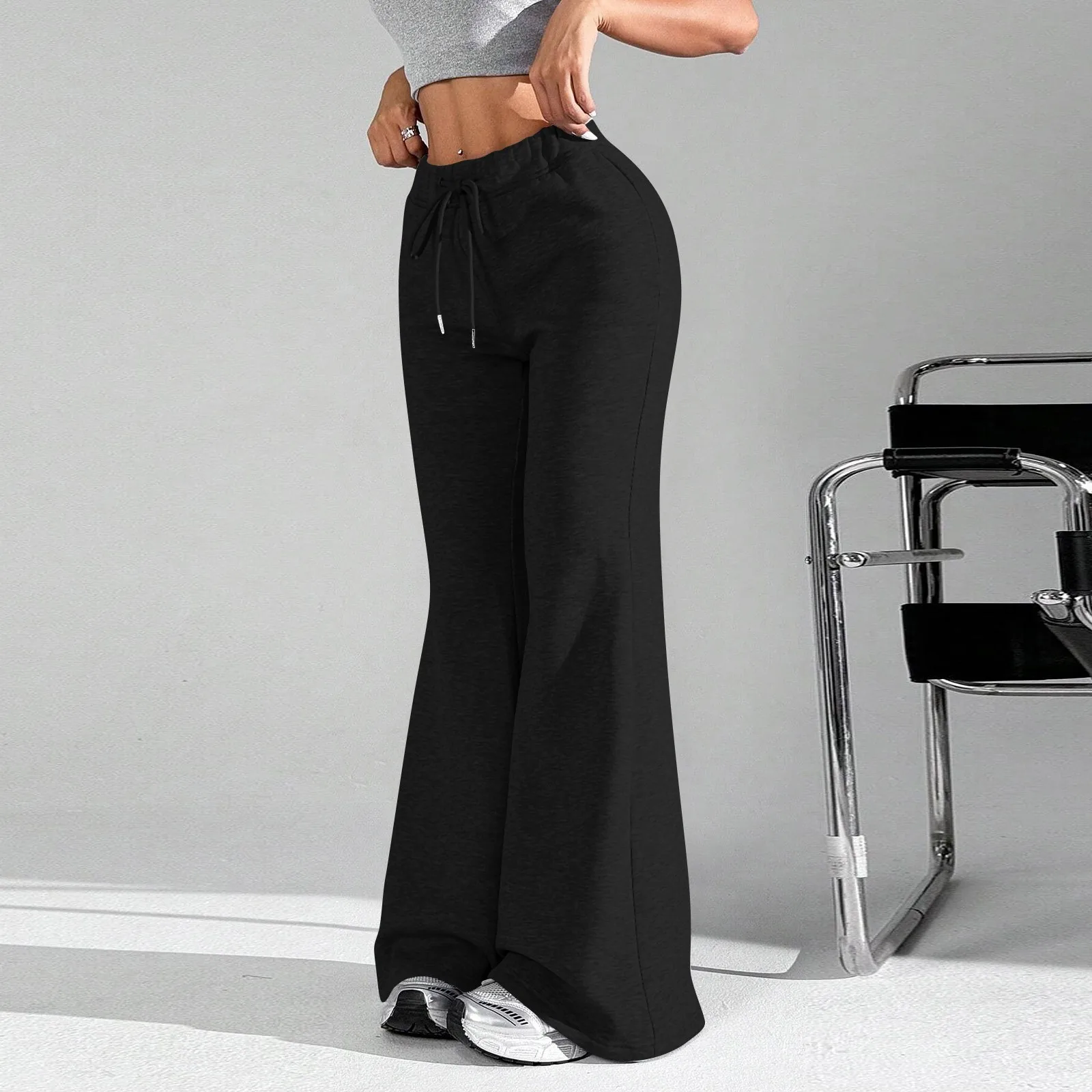 Ladies Fashion Loose Draw String Waist Solid Color Cargo Pants Leisure Flares