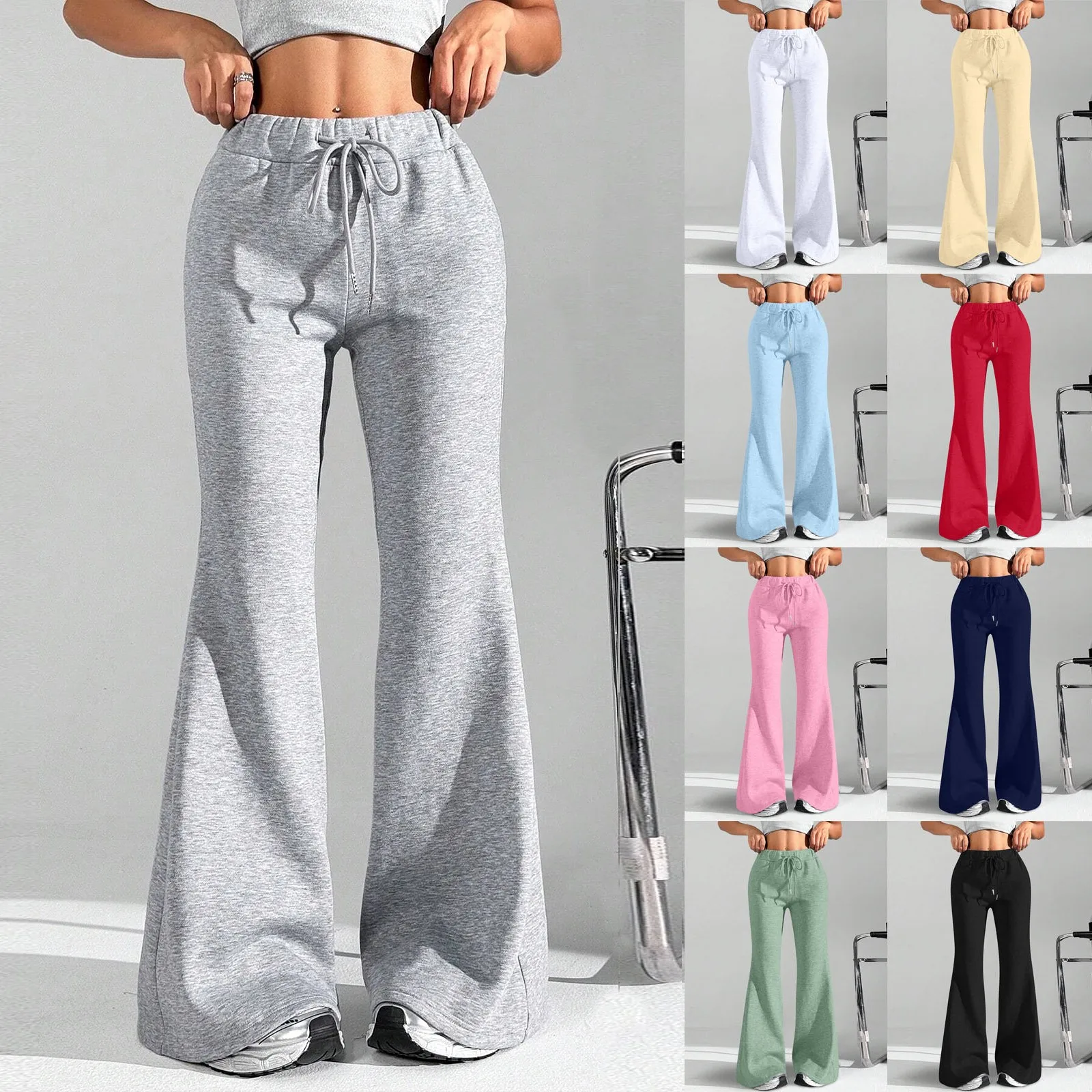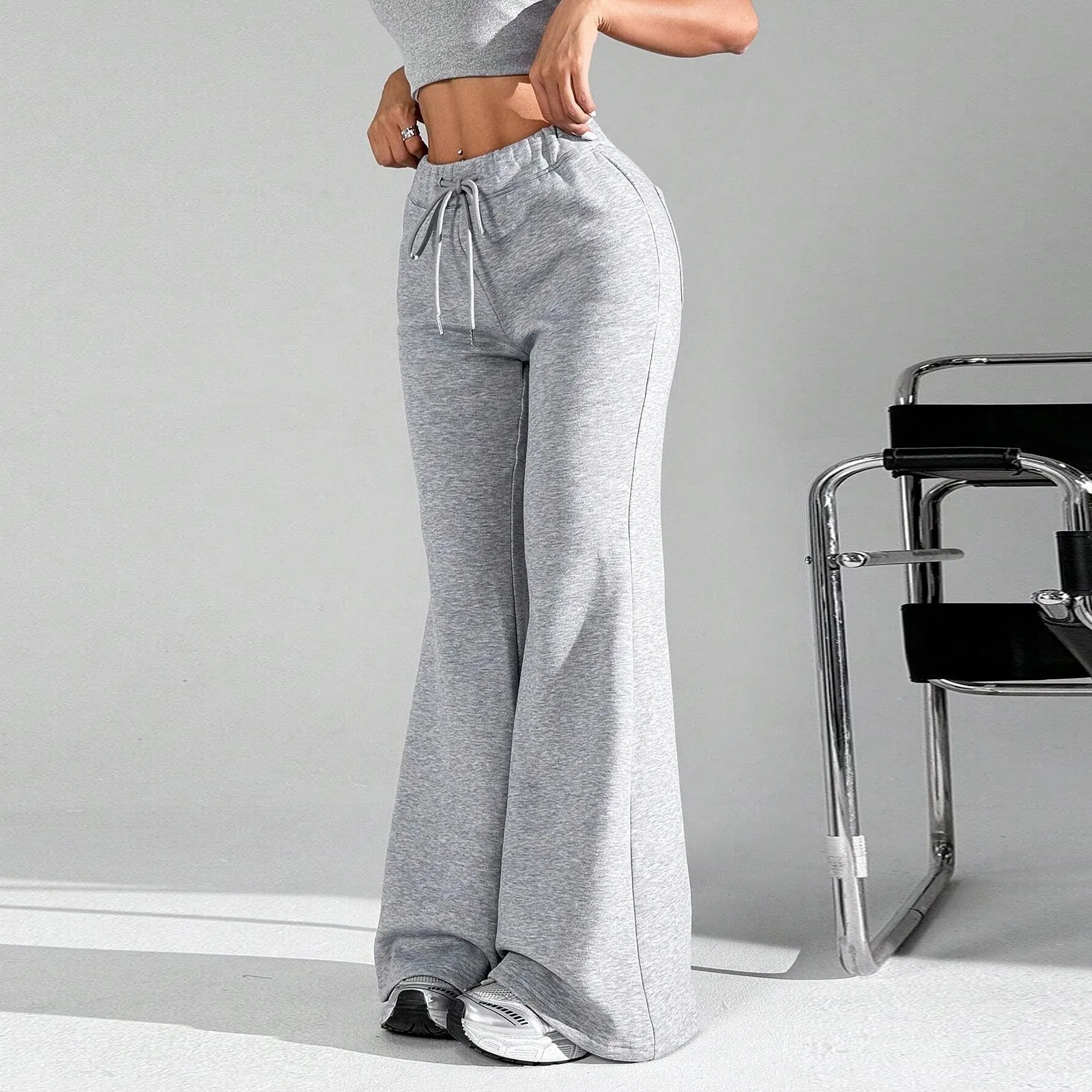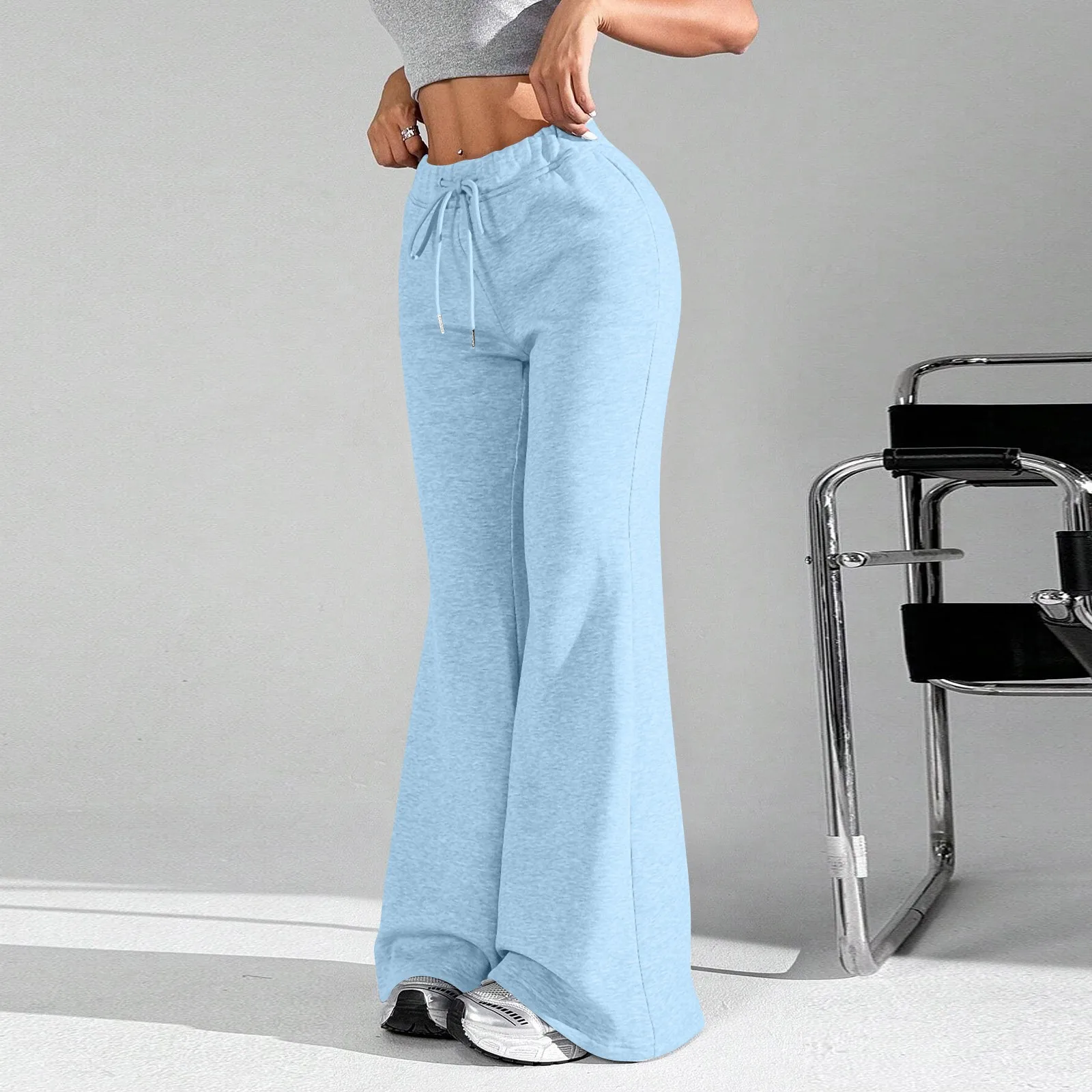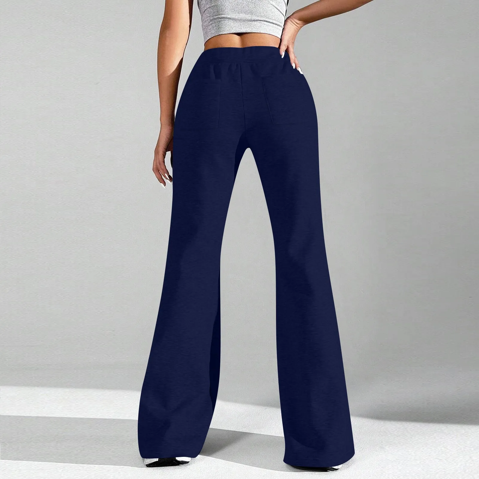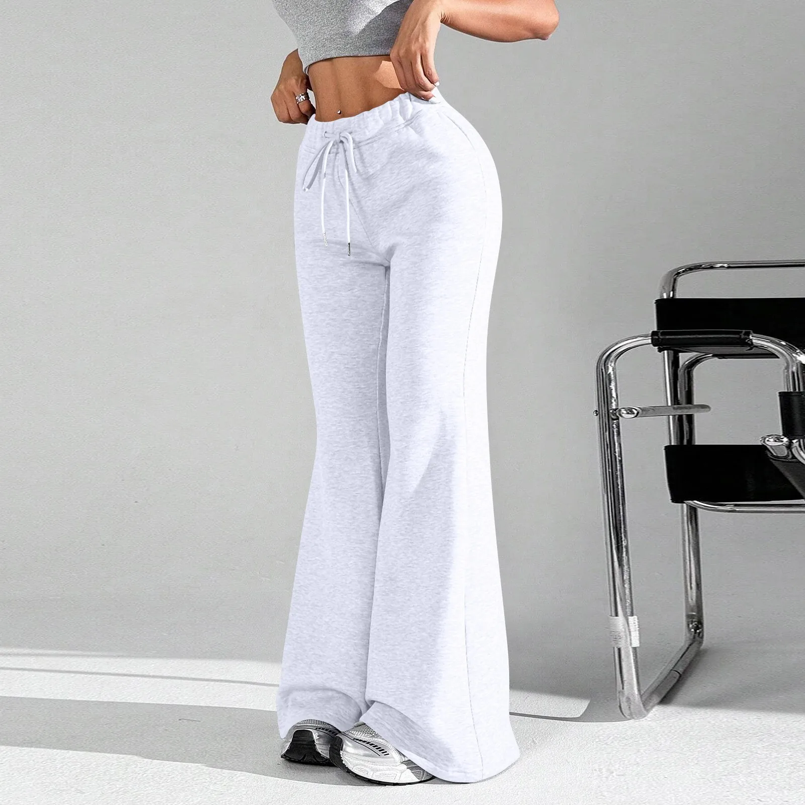 Ladies Fashion Loose Draw String Waist Solid Color Cargo Pants Leisure Flares