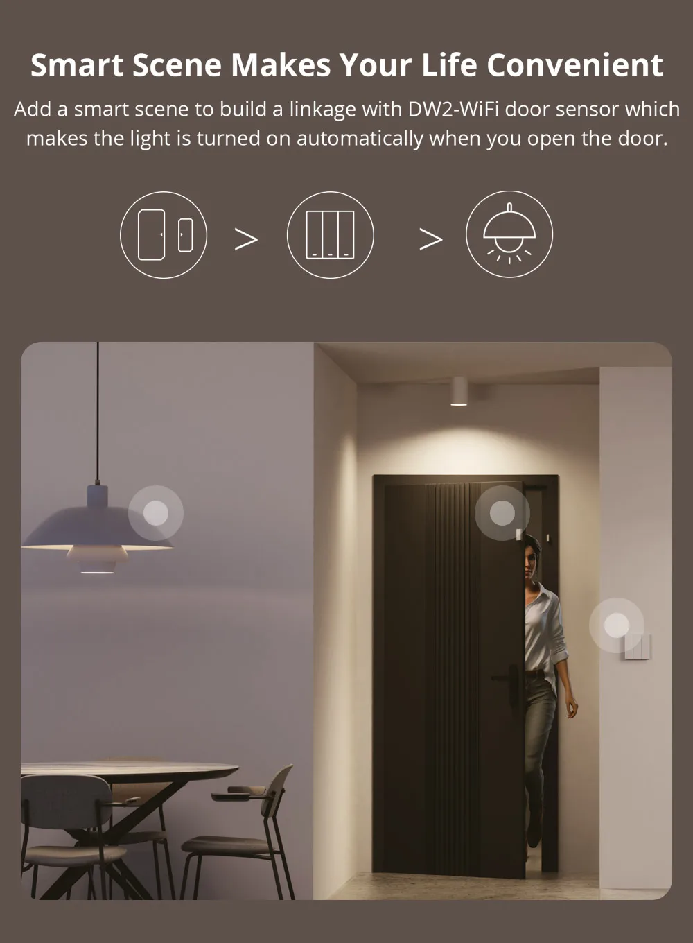 【”eWeLink-Remote” Control】M5 Matter is a smart switch with the gateway function of “eWeLink-Remote“. With Scene Controller R5 or S-MATE2, you can control the same light from two positions via eWeLink-Remote control. Realize two-way or multi-way control, troublesome wiring becomes a thing of the past.