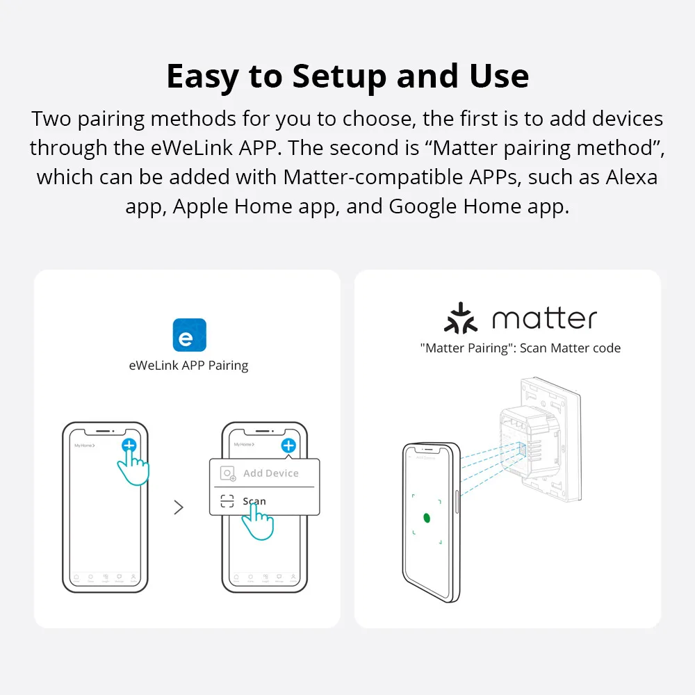 Crafted from high-grade PC V0 material, M5 Matter ensures high-temperature resistance and excellent flame-retardance. Separate the high and low voltage which you can disassemble the switch safely. And CE certified, safe performance is guaranteed.