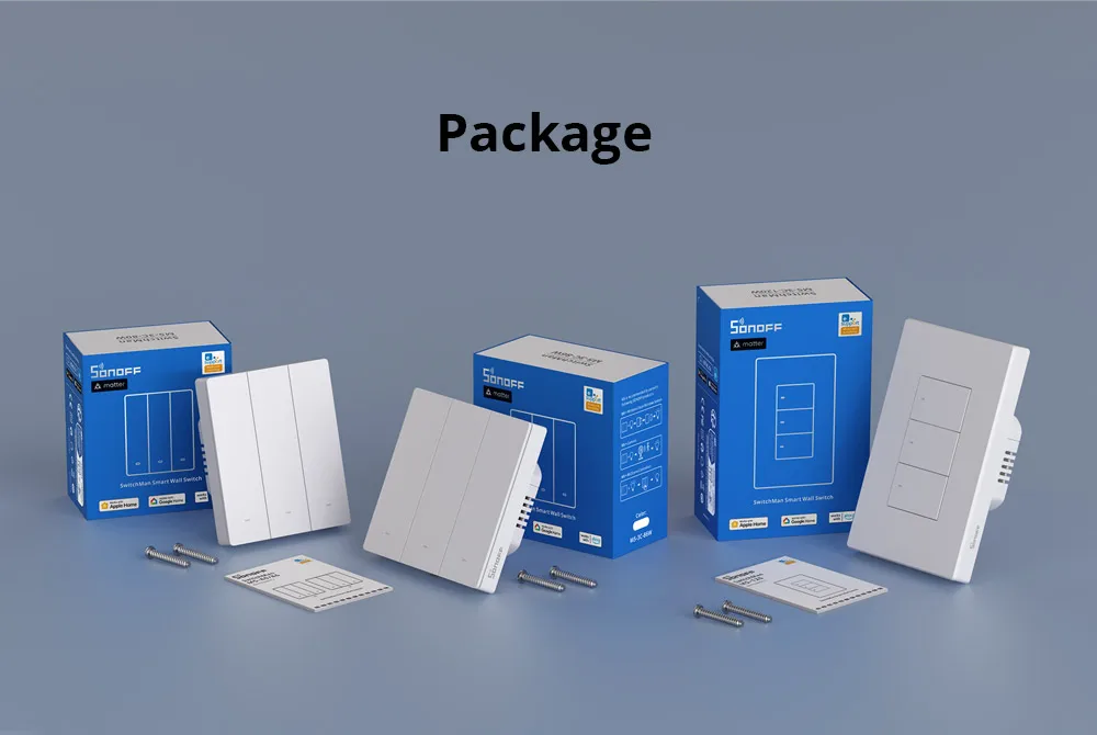 As a smart wall switch, M5 Matter adopts physical buttons for local control. Just press the button, and the lights will be turned on. Through the eWeLink APP, you can manage devices at any time and don’t worry about forgetting to turn off the electrical appliances when you go out. M5 Matter supports voice control, such as Alexa, Google Home, Apple Siri, and Alice. When you are busy, you can turn on the light by your voice.