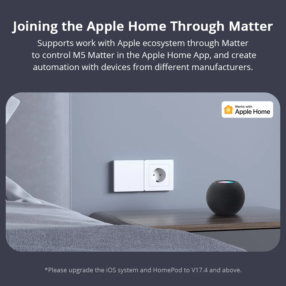 【Works with Apple Home】Supports work with the Apple ecosystem through Matter to control M5 Matter in the Apple Home App and create automation with devices from different manufacturers. *Please upgrade the iOS system and Hompod to V17.4 and above.