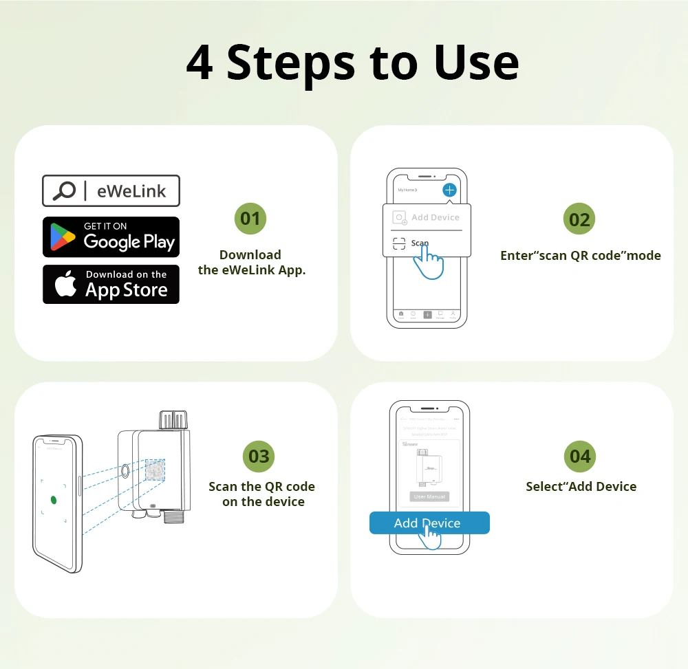 SONOFF Zigbee Smart Water Valve, you can automate and control your watering system with ease. It is easy and quick to install, simply connect the Zigbee Smart Water Valve between the faucet and the hose to quickly upgrade your irrigation system in just three minutes, automatically watering your lawn, garden, vegetable patch, and more. Open the eWeLink app, tap the button, and you can start today’s irrigation immediately. Set a smart scene for the Zigbee Smart Water Valve to irrigate automatically in the early morning, making your life easier.