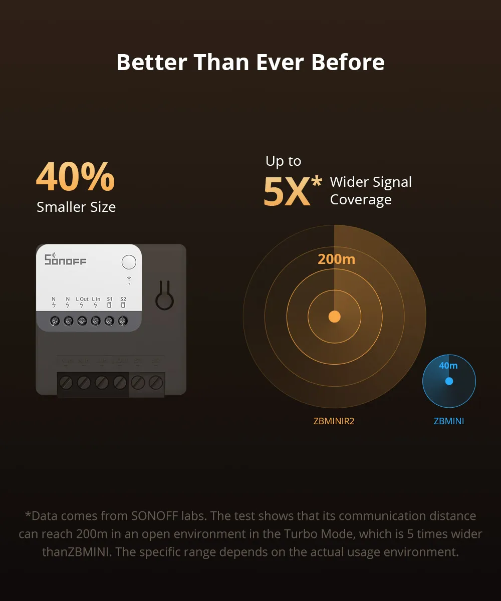A reliable connection is crucial for your Zigbee network. ZBMINIR2, as a Zigbee router device with ‘Turbo Mode’, boosts signal strength and expands coverage for optimal performance.