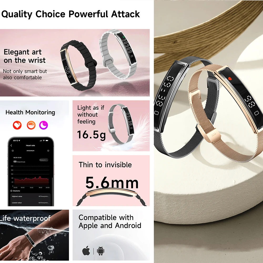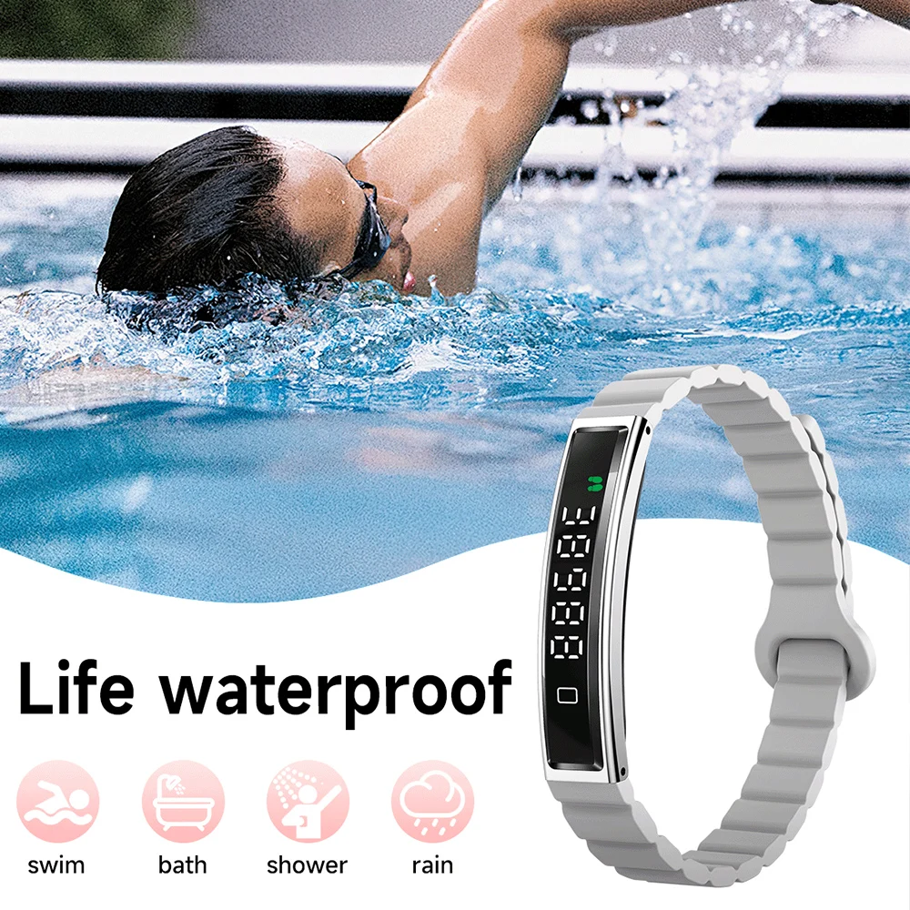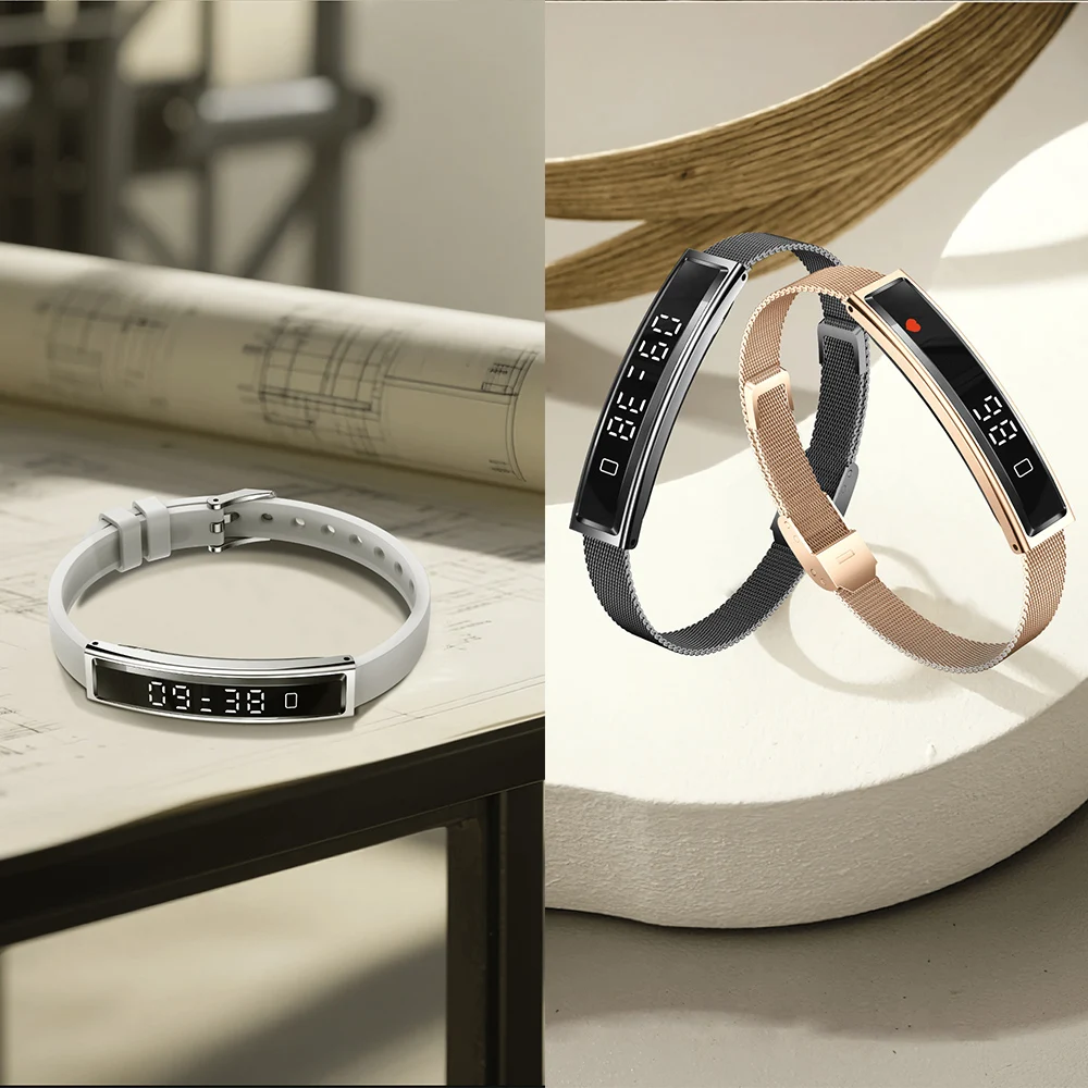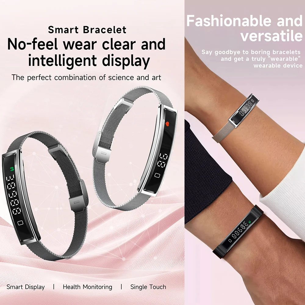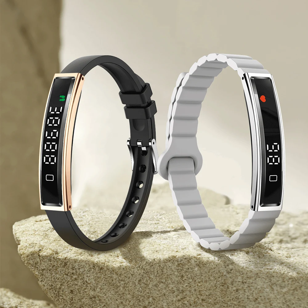This smart bracelet features a screen and buttonless design and needs to be charged to power on. After receiving the package, it is recommended to charge it for half an hour before attempting to turn it on.