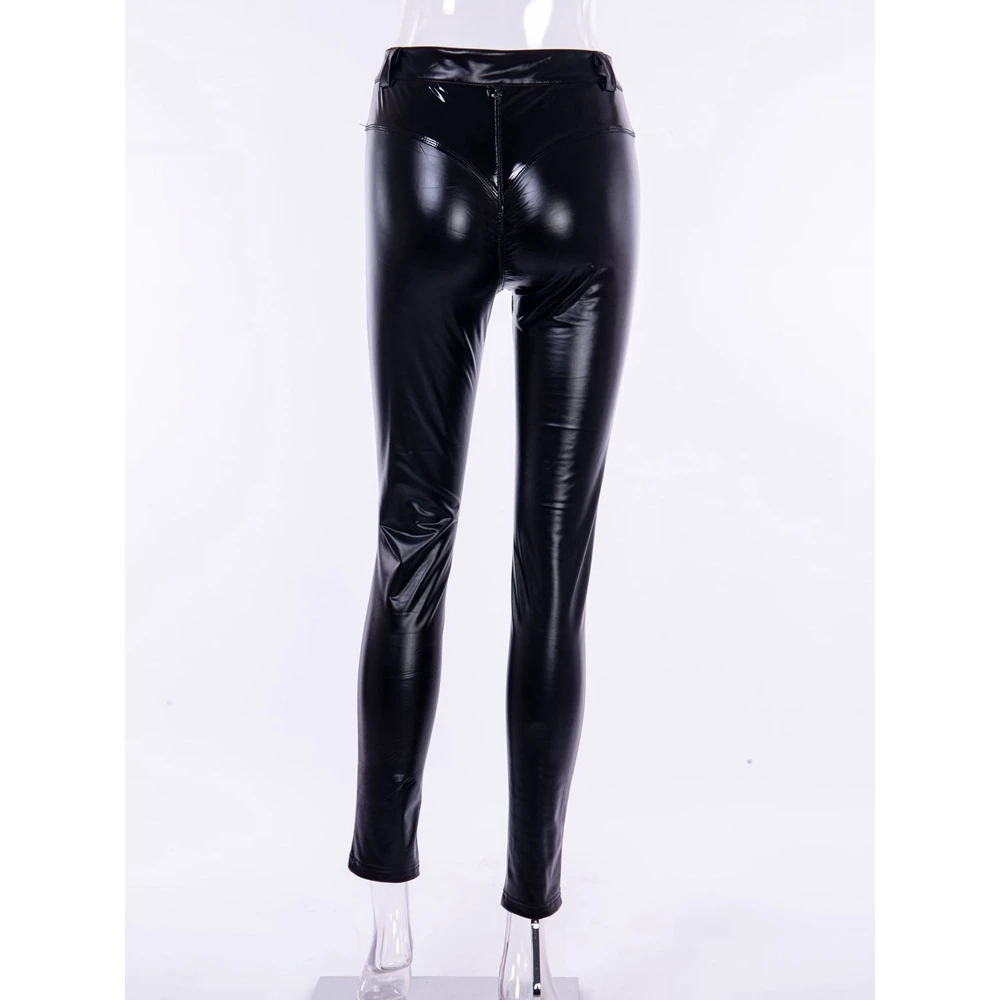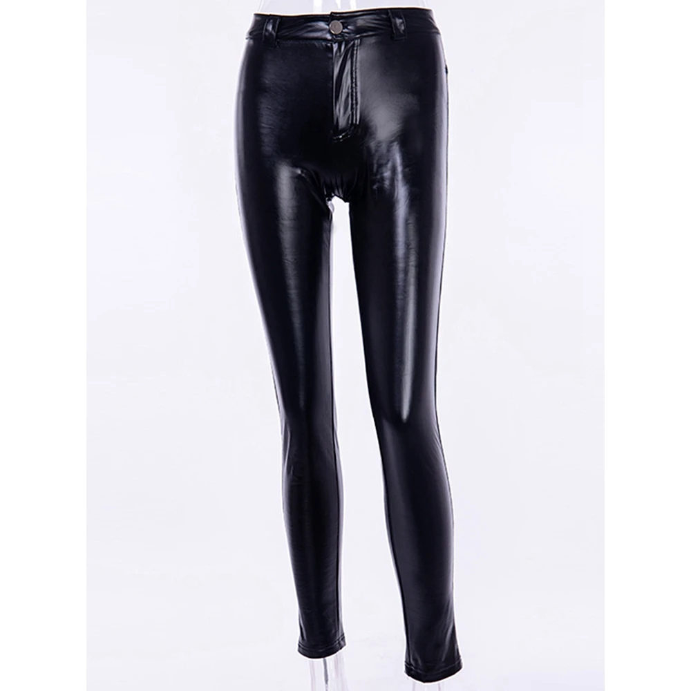 Spring Autumn Women High Waist PU Leather Skinny Push Up Pants Sporty Female Faux Leather Leggings Streetwear Clothing traf