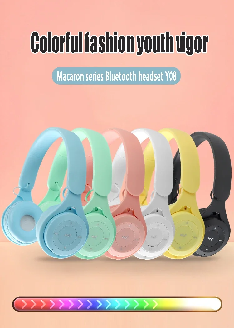 Stereo Y08 Headset 5.3 Bluetooth Headset Folding Wireless Sports Earphone Gaming Headsets Over-ear Headphones for Android ios