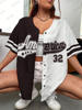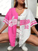 Summer New America Printed Oversize Pink And White Blouse Women Streetwear Baseball Shirt Hip Hop Short Sleeve Button Up Tops