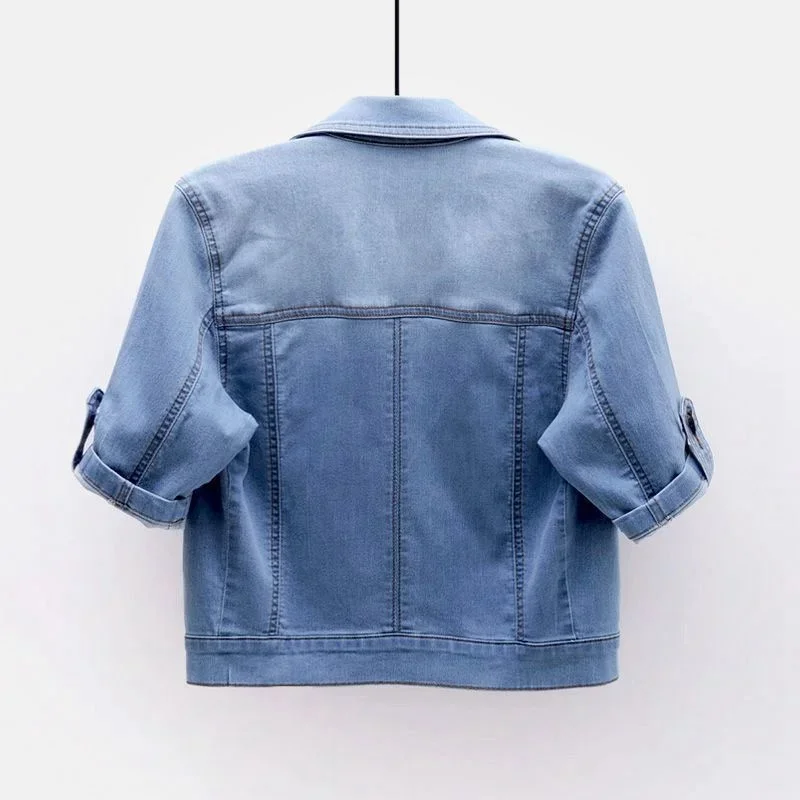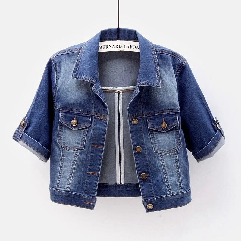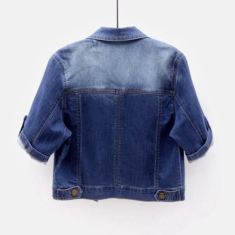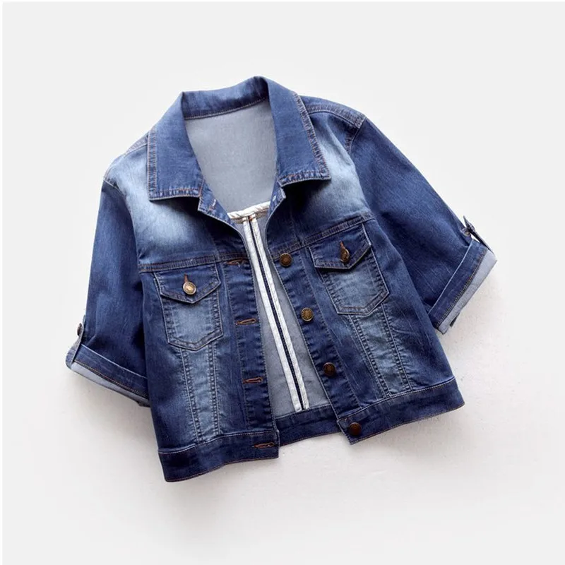 Summer Short Women Denim Korean Fashion Coat Thin Slim Outerwear Half Sleeve Jeans s Female Cardigan Clothes