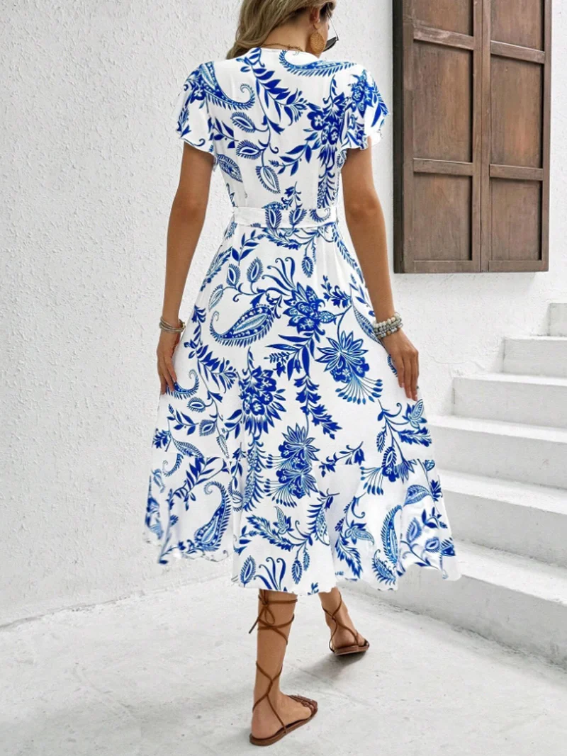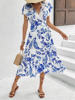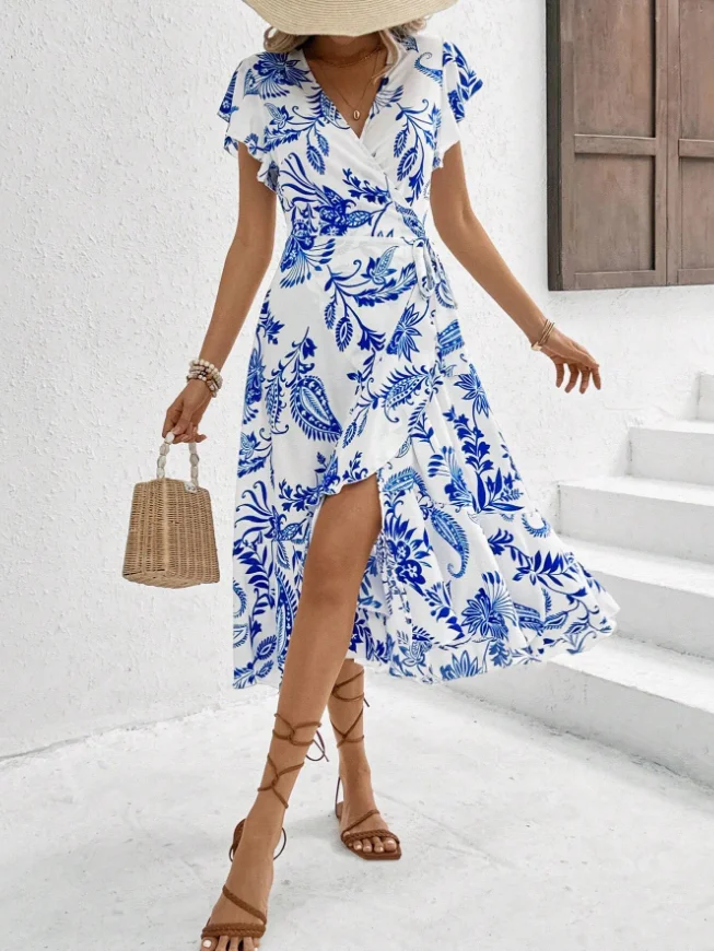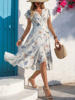 Summer Sleeveless Dress Women Floral Print Fashion Ruffle Split Ladies Midi Dresses Pleated Loose Korean Style Woman Dress