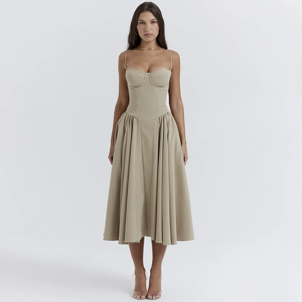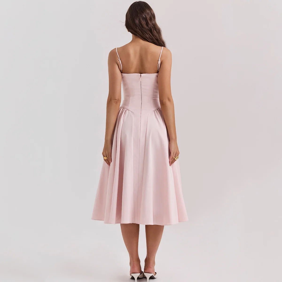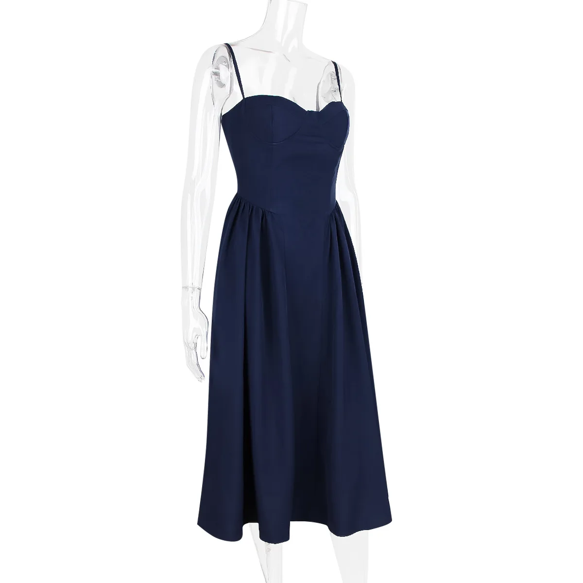Summer Women Elegant Sleeveless Backless Pleated Dresses Lady Sexy Solid Sling Midi Dress 2024 Female Party Evening A-line Robes
