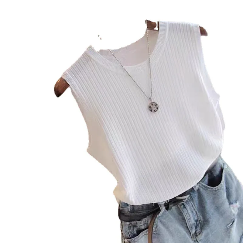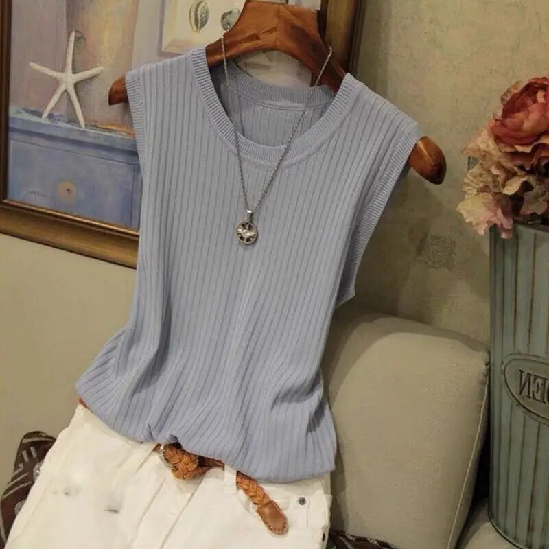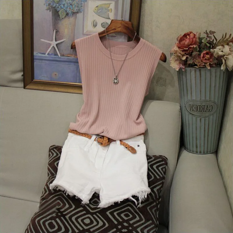 Summer Women Knitted Loose Sweater Vests Sexy O-Neck Sleeveless Knitwear Tank Tops YRFZ-N6634